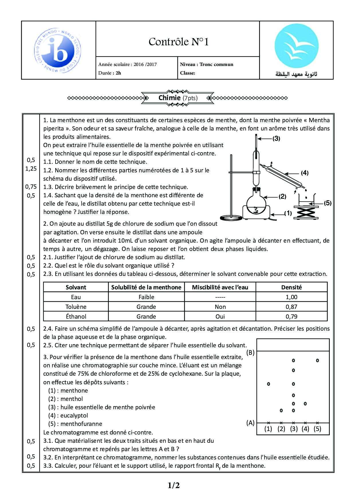 Devoir 1 Modèle 4 - Physique-Chimie TC Semestre 1