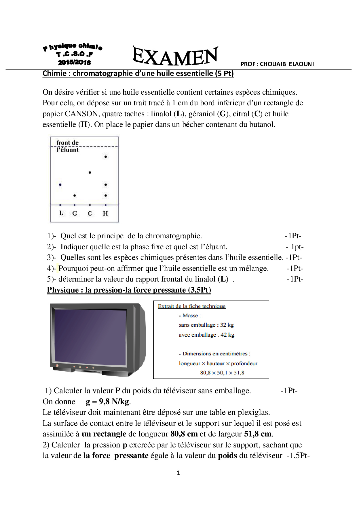 Devoir 2 Modèle 3 - Physique-Chimie TC Semestre 1