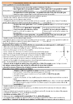 La concentration molaire - Activités 2