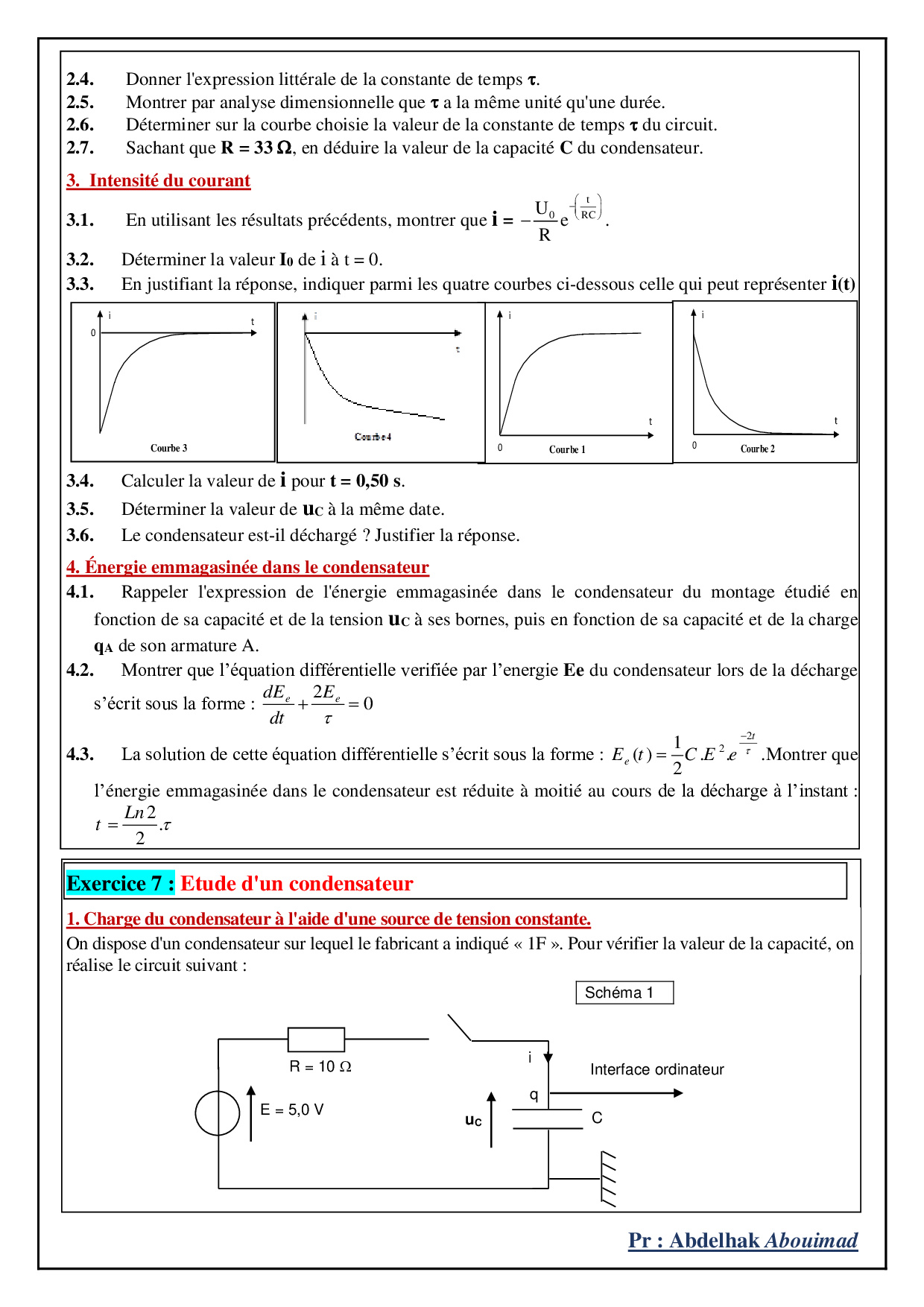 Dipôle RC - Exercices non corrigés 3