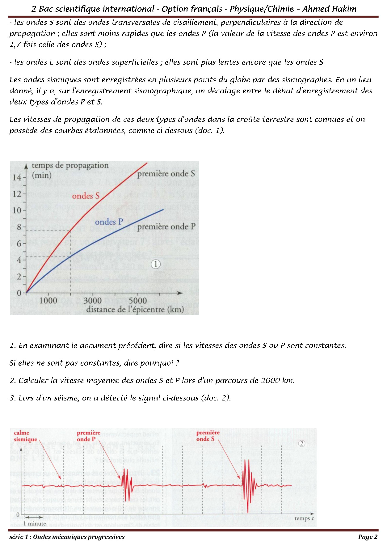 Ondes mécaniques progressives - Exercices corrigés 1