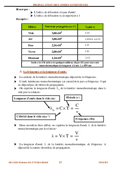 Propagation des ondes lumineuses