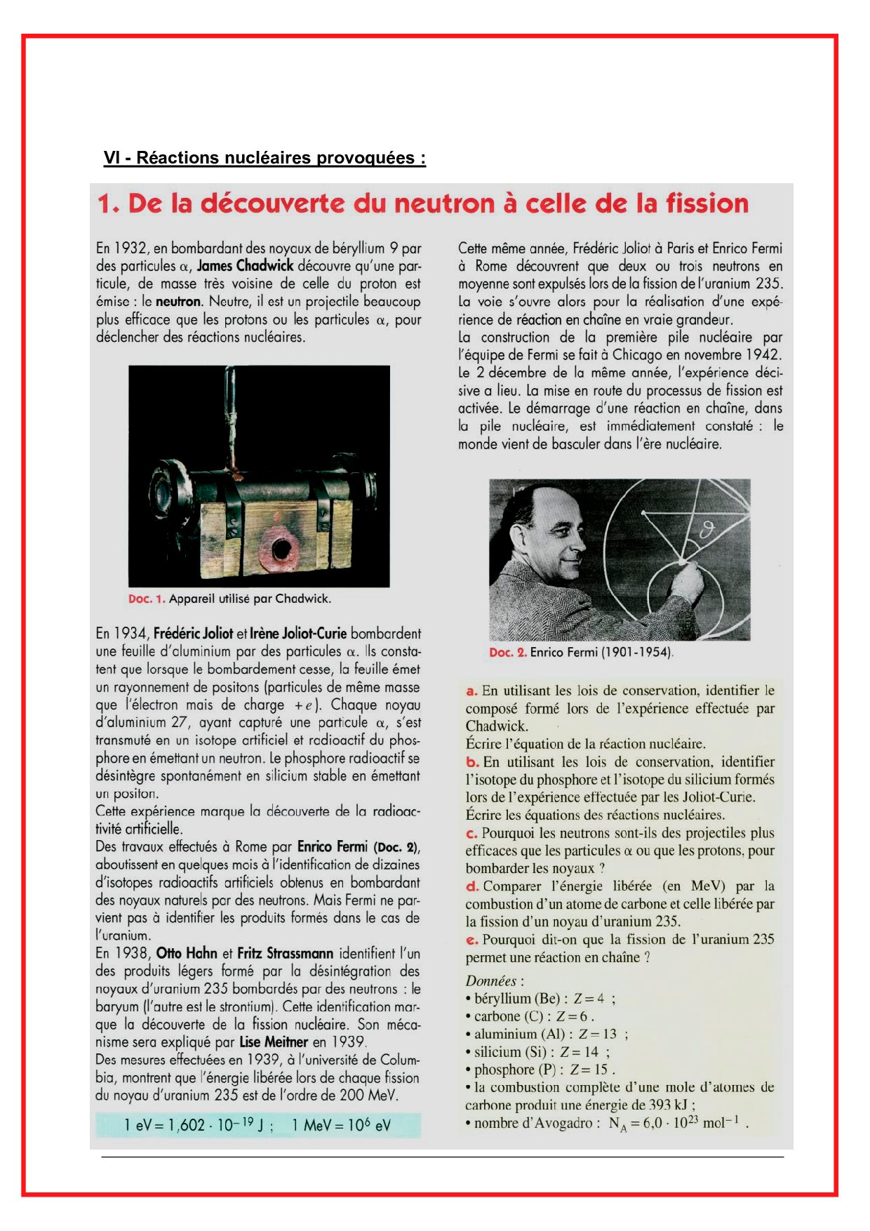 Noyaux, masse et énergie - Cours 1