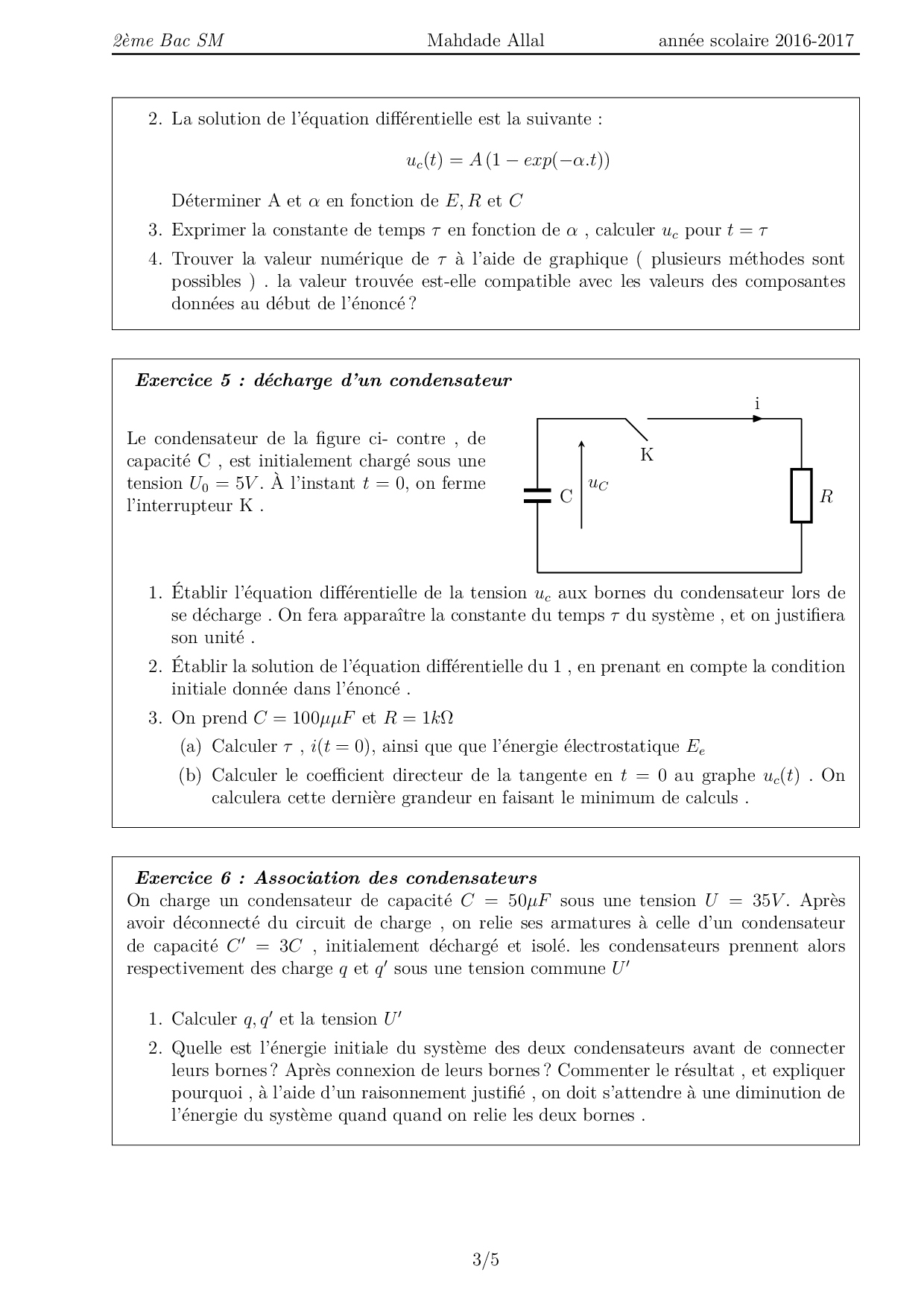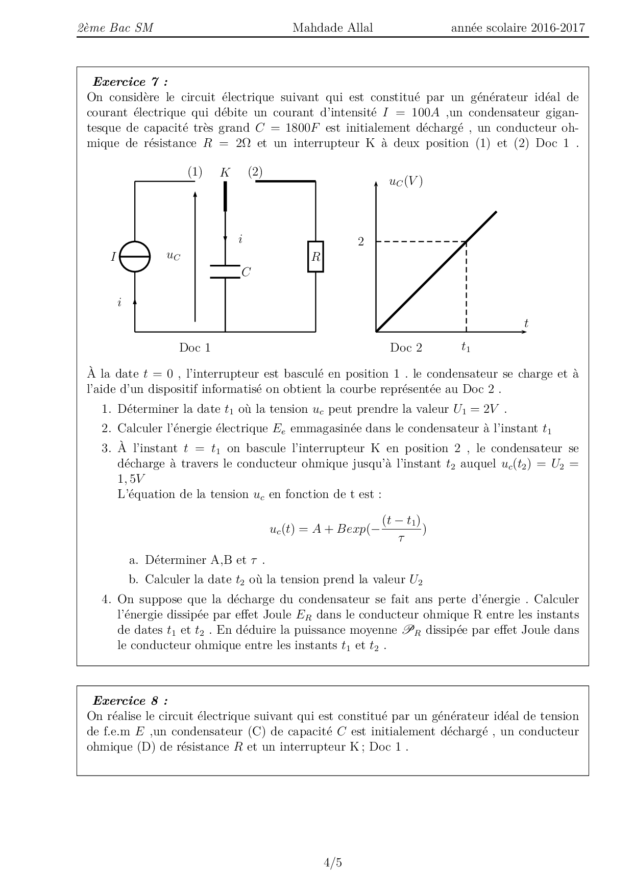 Dipôle RC - Exercices non corrigés 1