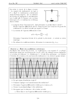 Oscillations libres d'un circuit RLC série - Exercices non corrigés 1