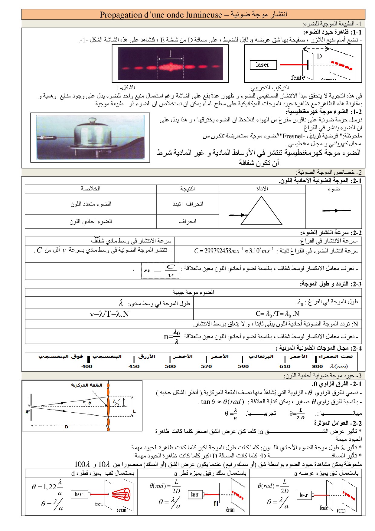 انتشار موجة ضوئية - ملخص الدرس 1