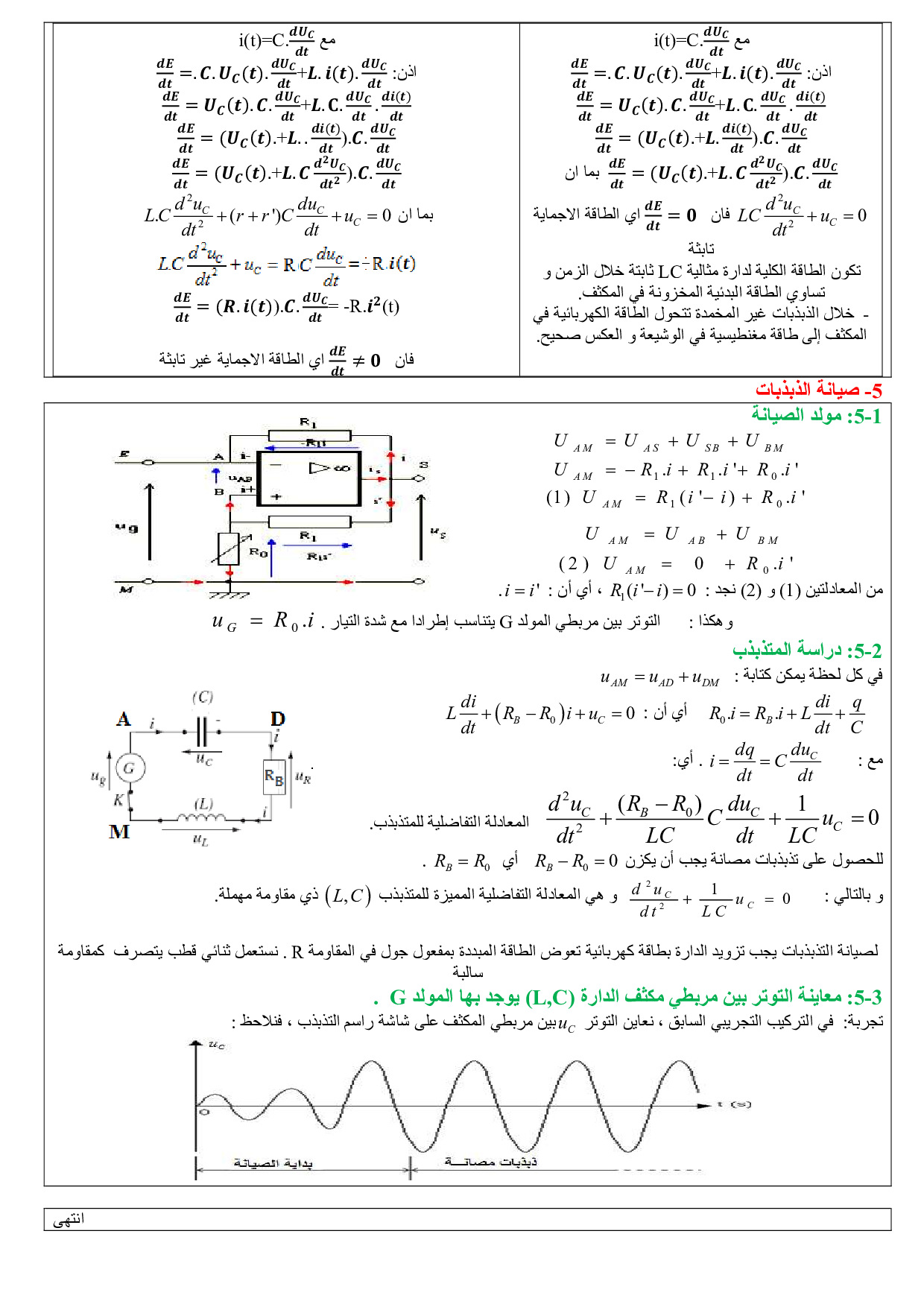 التذبذبات الحرة في دارة RLC متوالية - ملخص الدرس 1