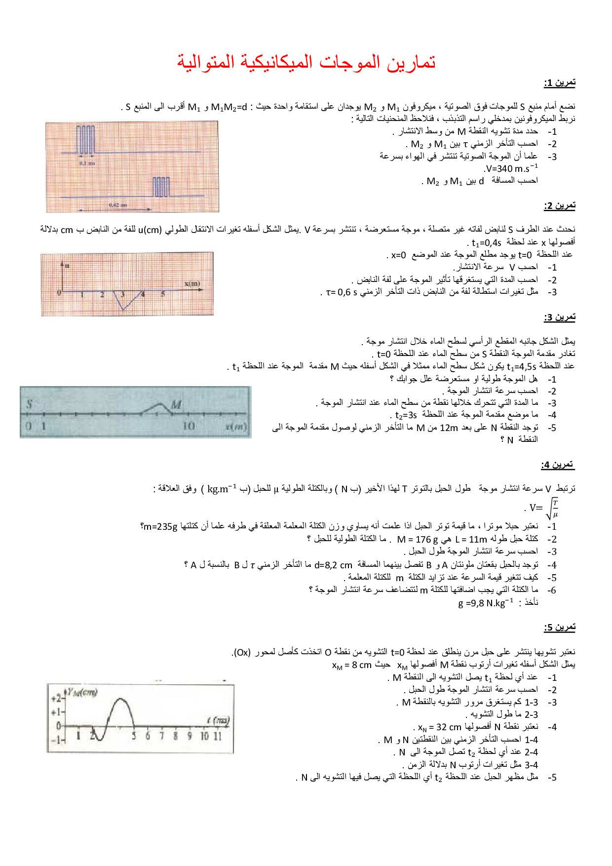 الموجات الميكانيكية المتوالية - سلسلة التمارين 2