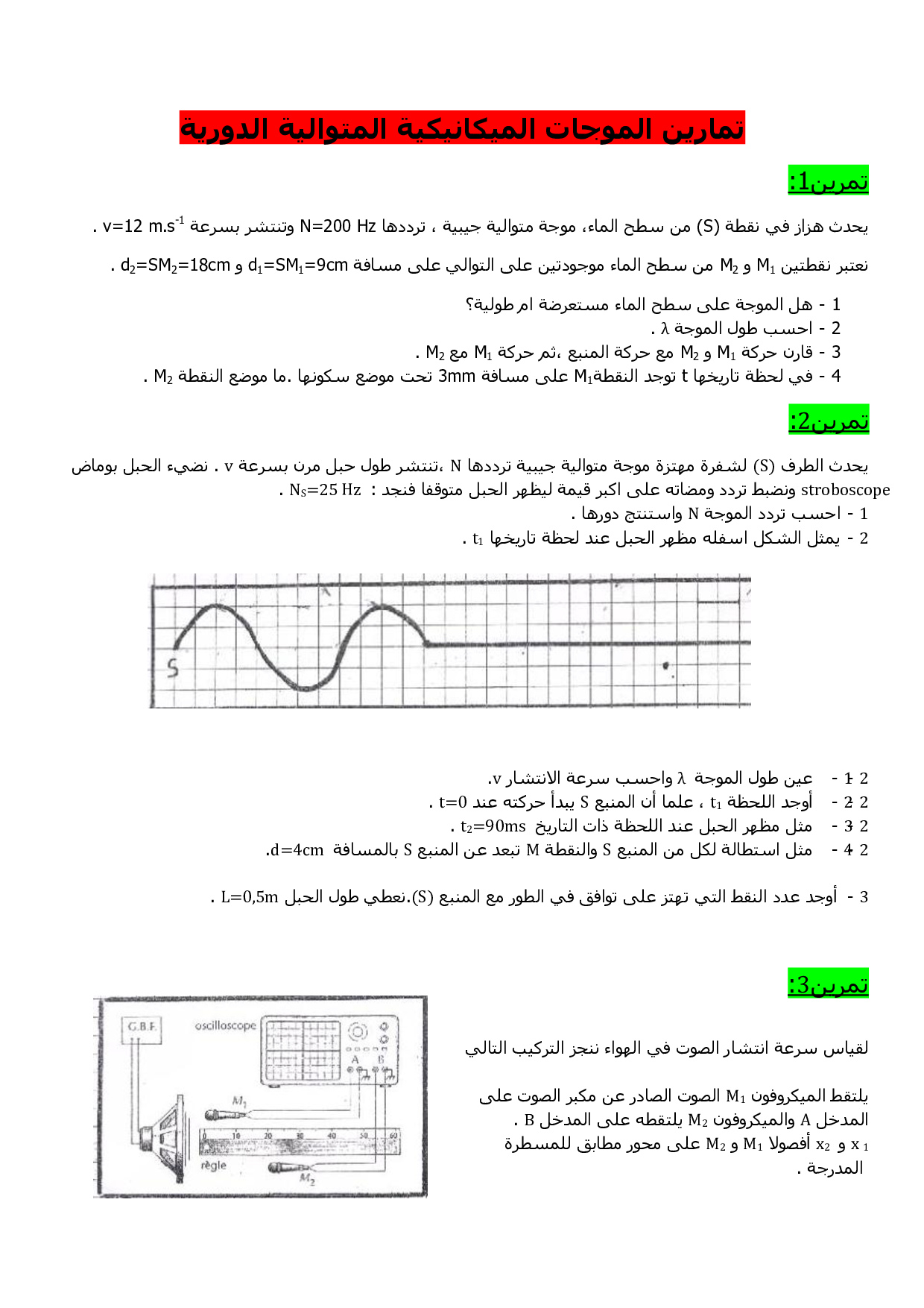 الموجات الميكانيكية المتوالية الدورية - سلسلة التمارين 3