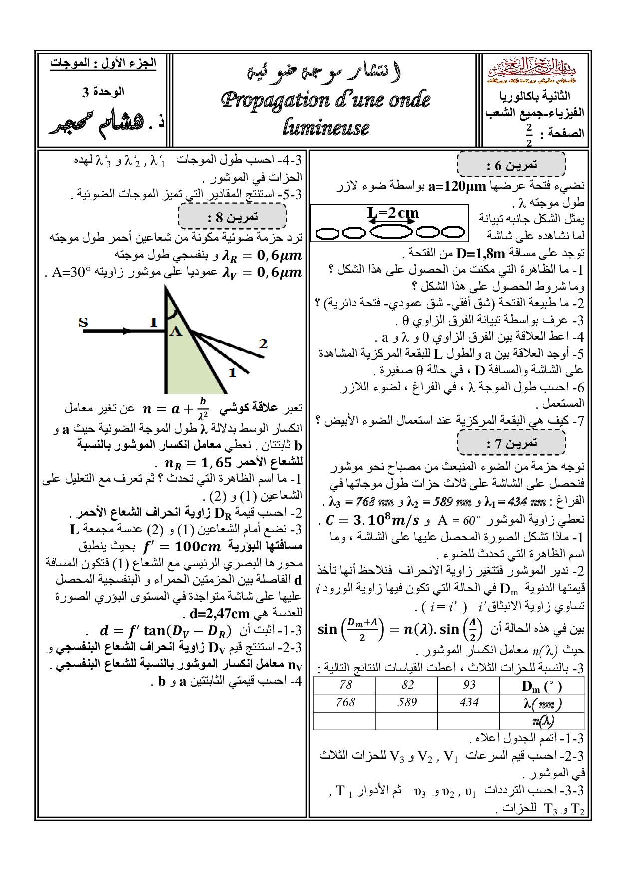 انتشار موجة ضوئية - تمارين غير محلولة 1