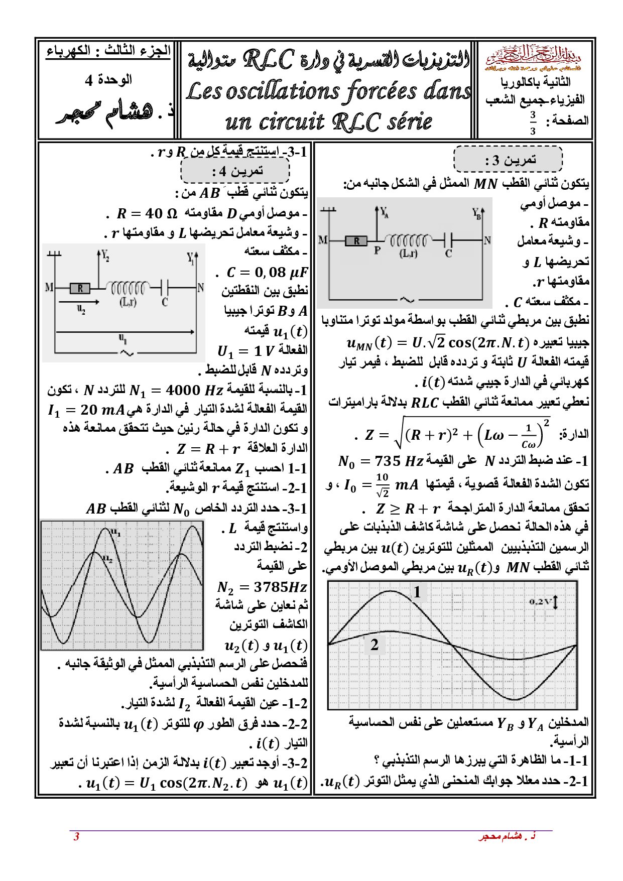 التذبذبات القسرية في دارة RLC متوالية (علوم رياضية)