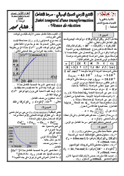 التتبع الزمني لتحول كيميائي - سرعة التفاعل - تمارين غير محلولة 1