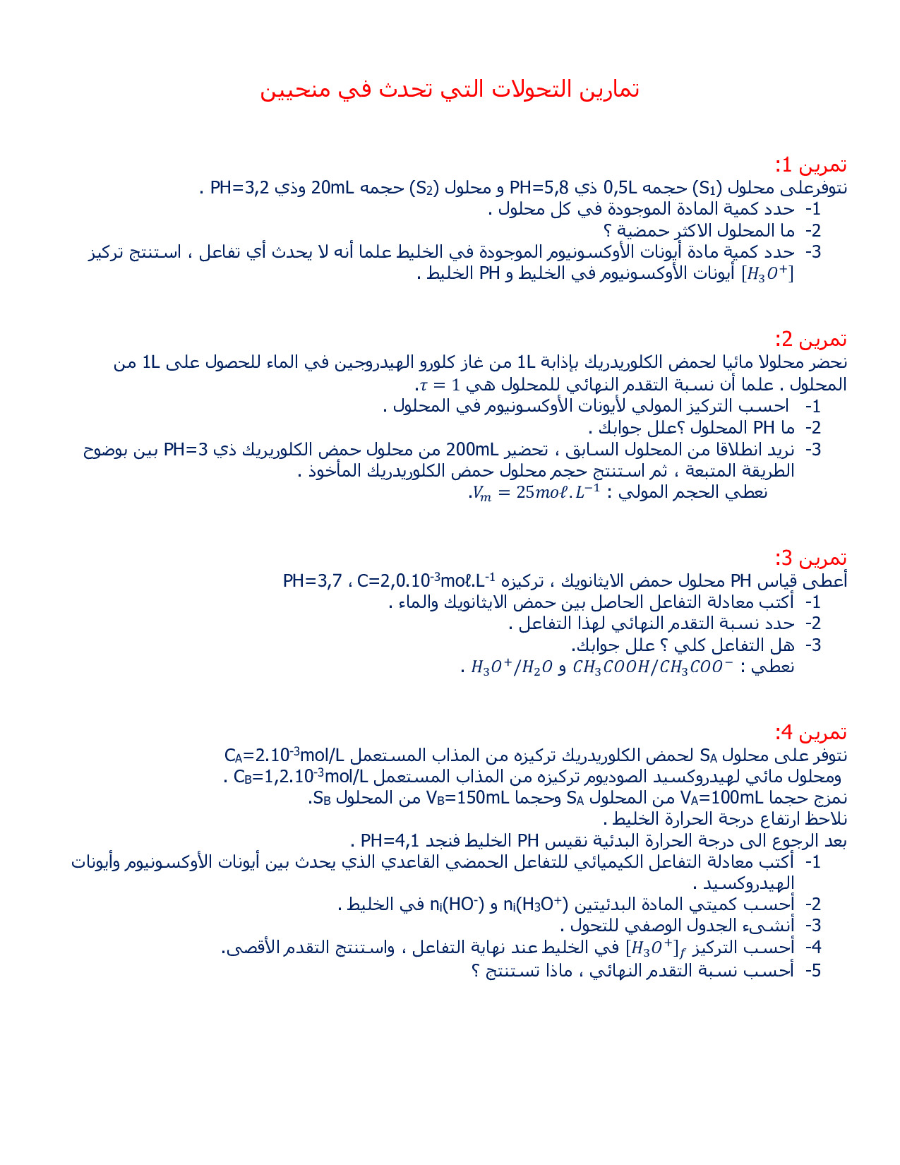 التحولات الكيميائية التي تحدث في منحيين - سلسلة التمارين 2