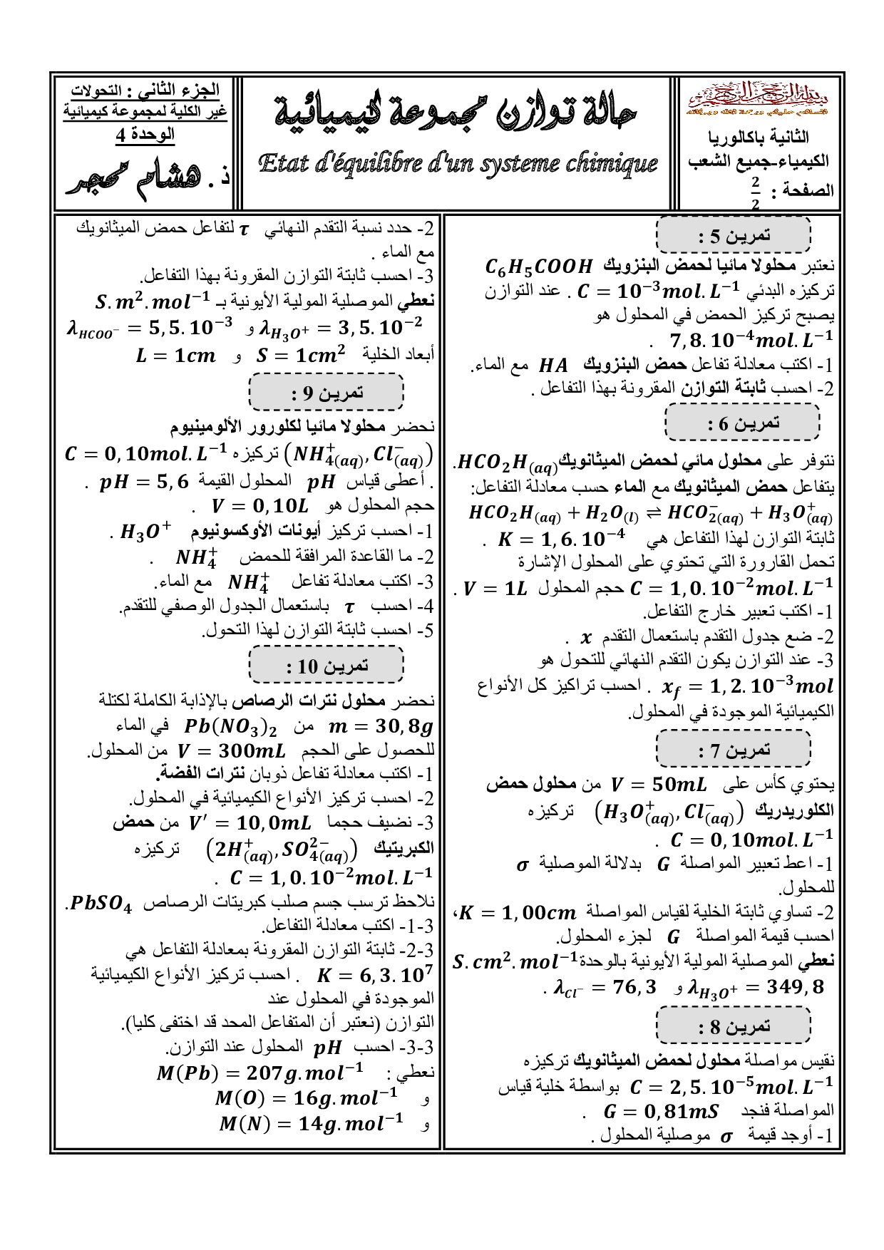 حالة توازن مجموعة كيميائية - تمارين غير محلولة 1
