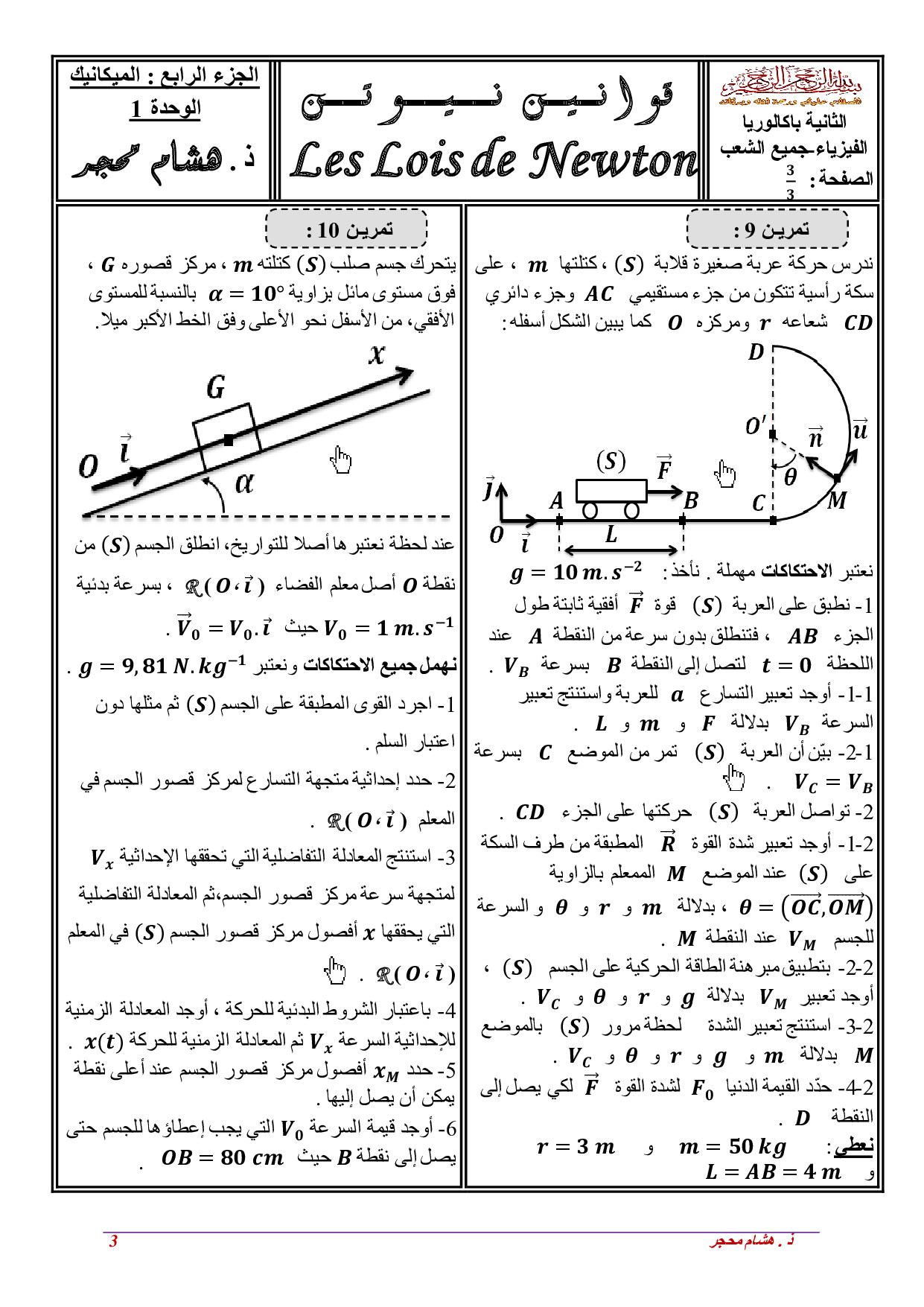 قوانين نيوتن - تمارين غير محلولة 1