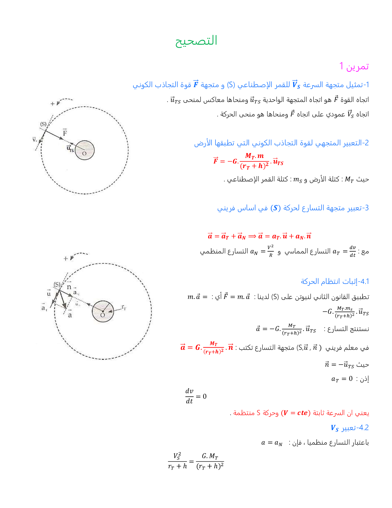 الأقمار الصناعية والكواكب - تصحيح سلسلة التمارين 2