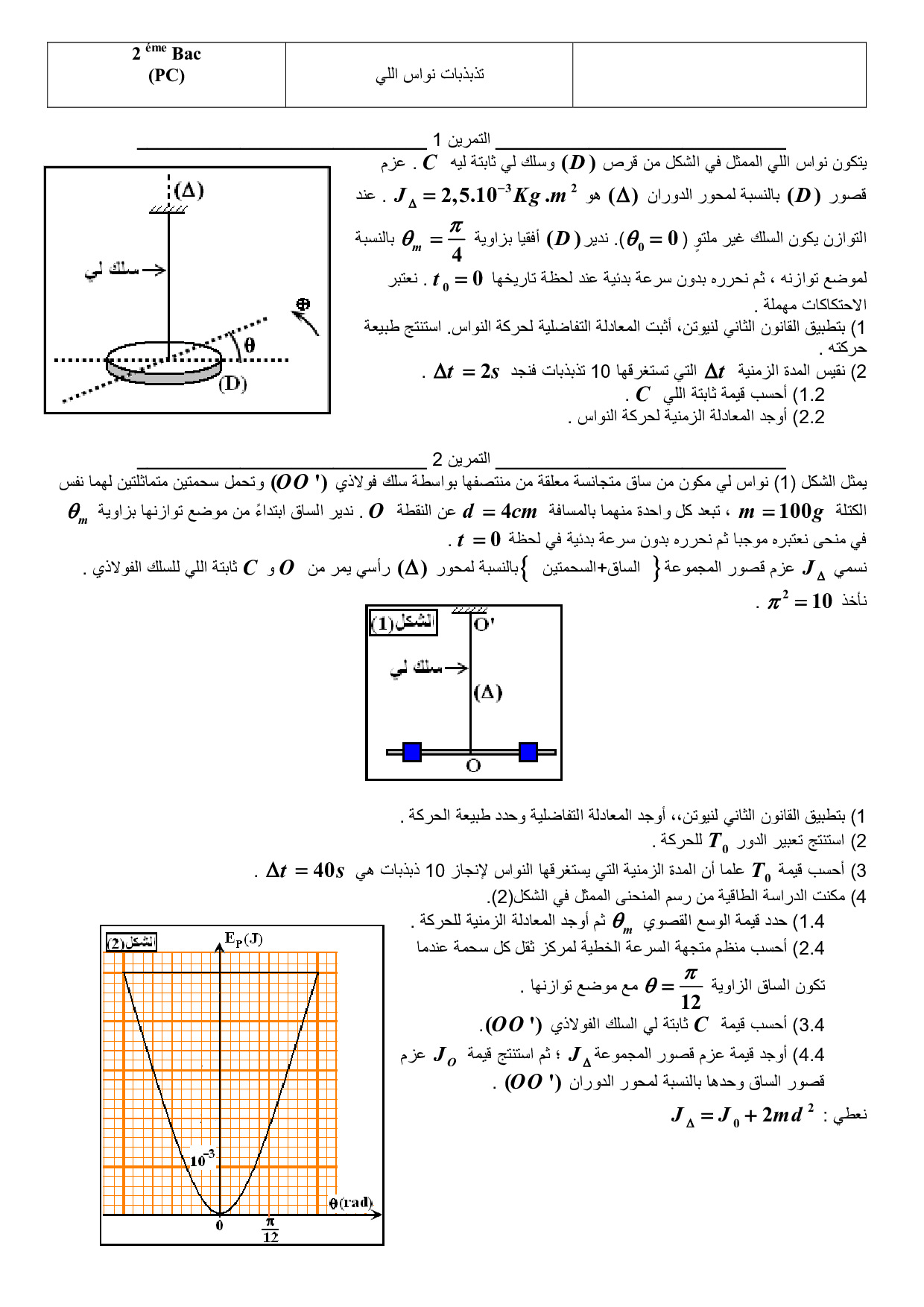 تذبذبات نواس اللي - تمارين غير محلولة 1