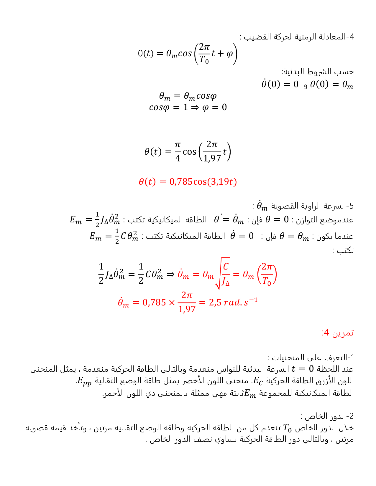 المظاهر الطاقية للتذبذبات الميكانيكية - تصحيح سلسلة التمارين 2