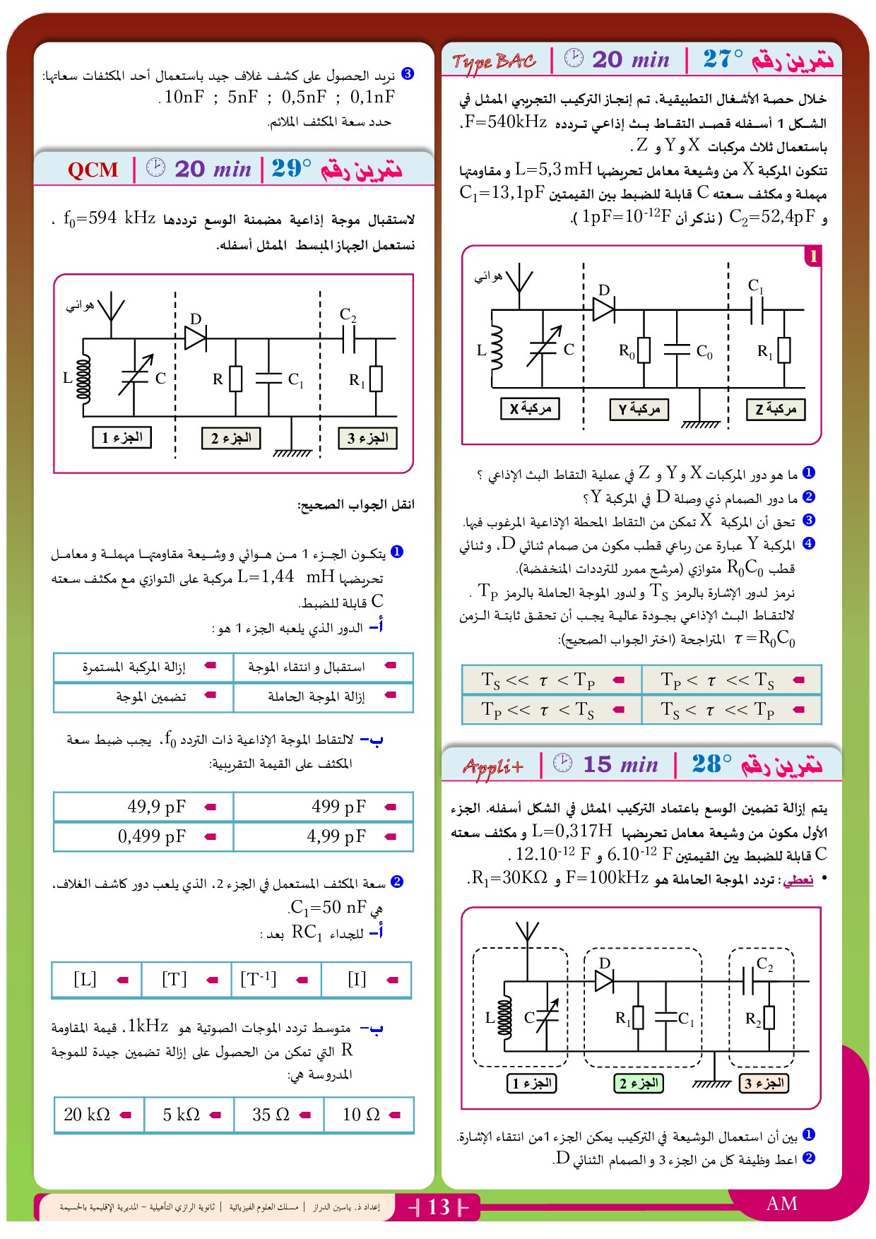 تمارين الفيزياء غير مصححة 3 (الكهرباء)