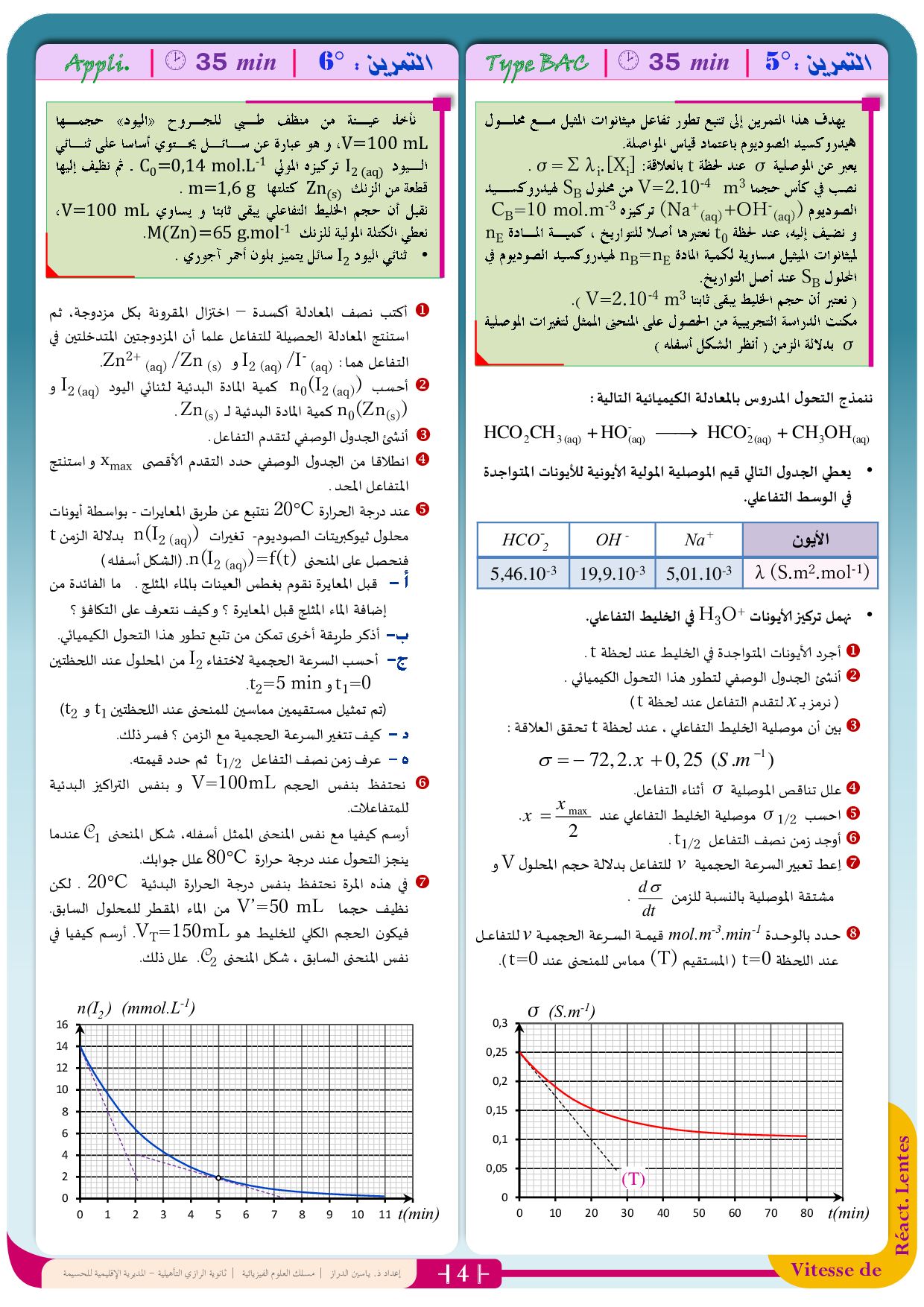 تمارين الكيمياء غير مصححة 1 (التحولات السريعة والتحولات البطيئة لمجموعة كيميائية)
