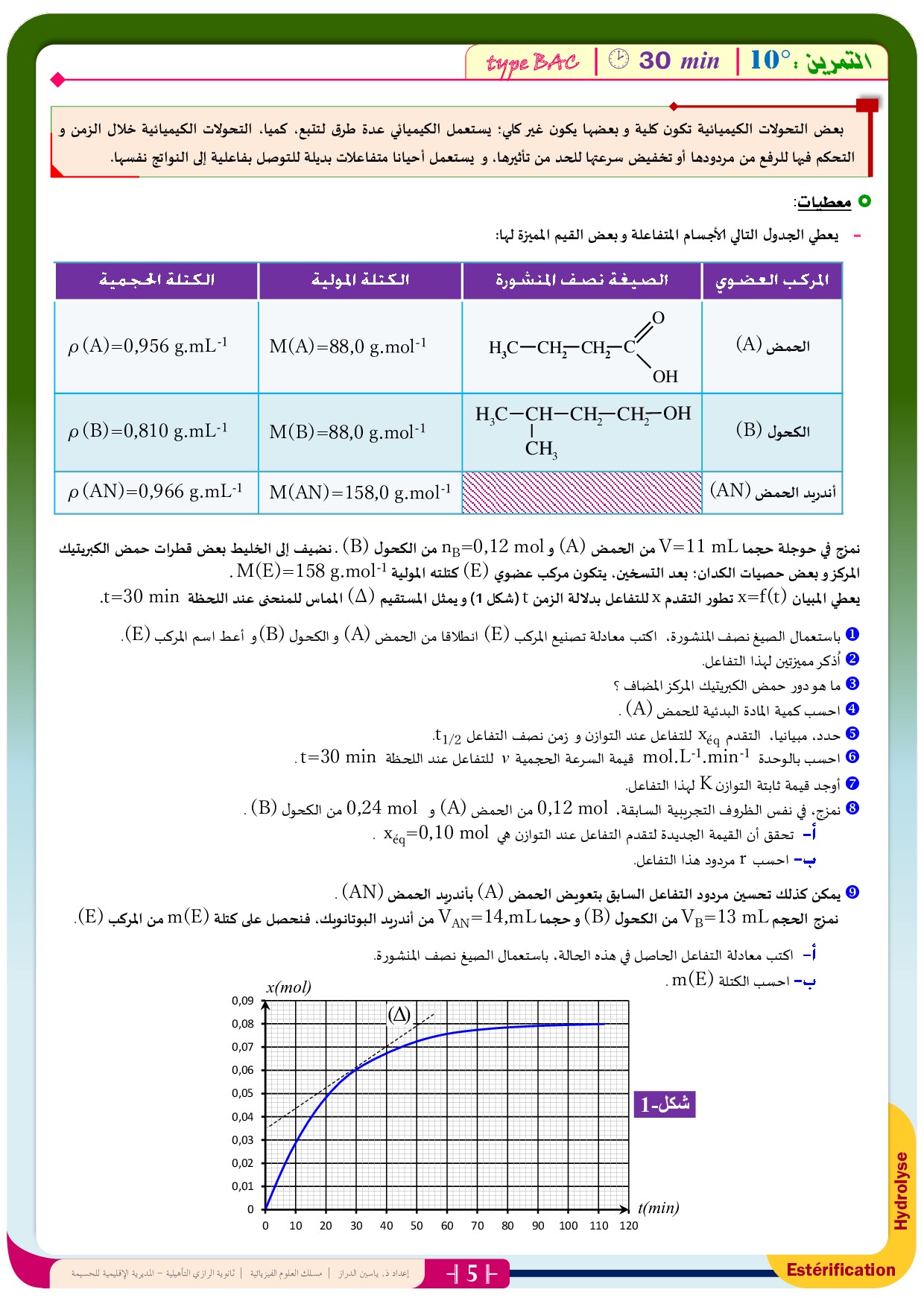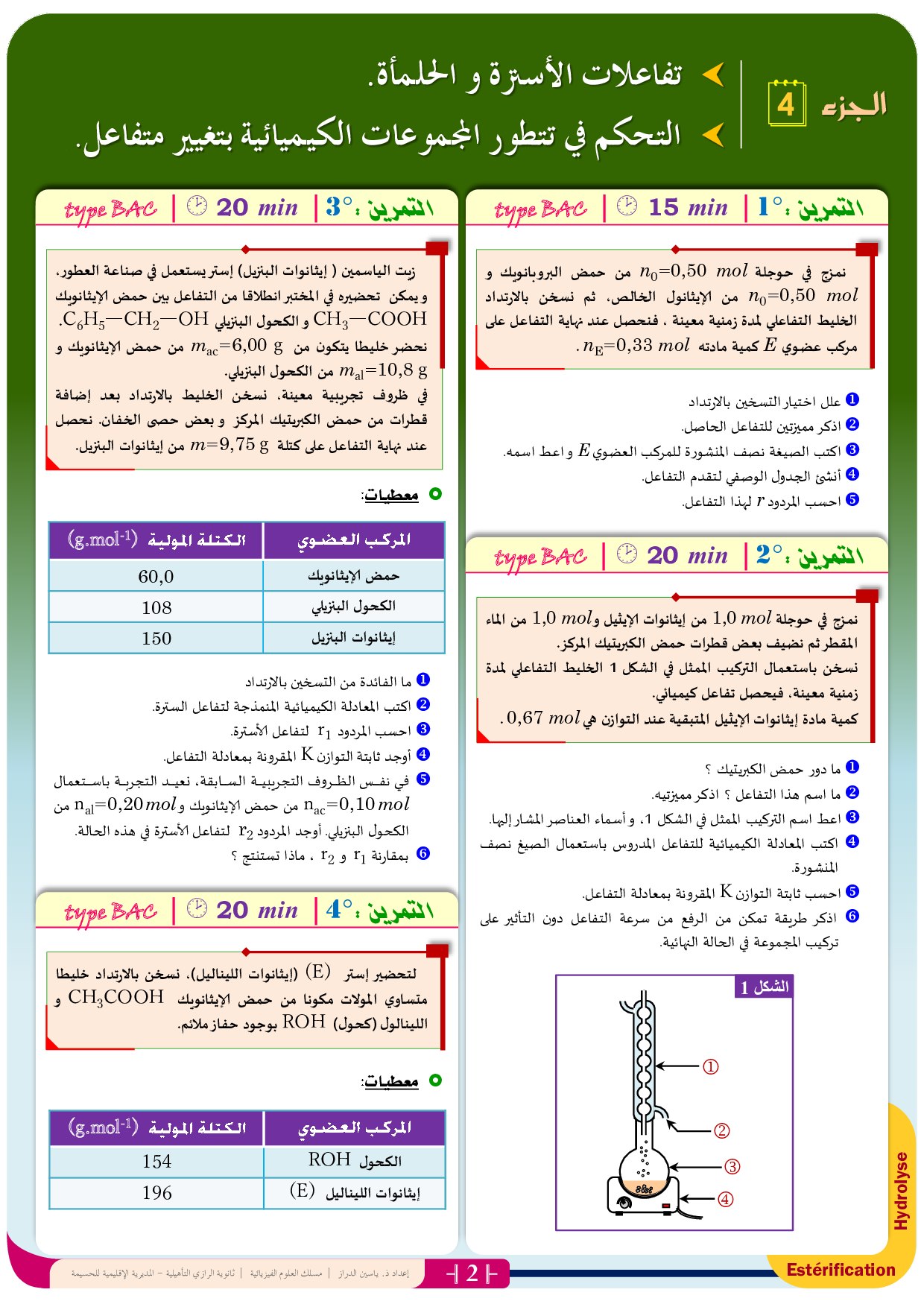 تمارين الكيمياء غير مصححة 4 (كيفية التحكم في تطور مجموعة كيميائية)