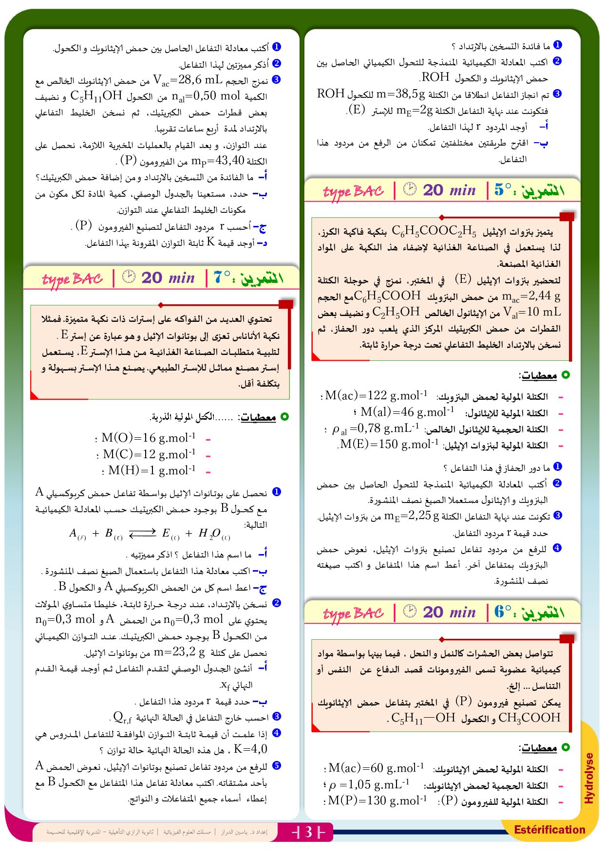تمارين الكيمياء غير مصححة 4 (كيفية التحكم في تطور مجموعة كيميائية)