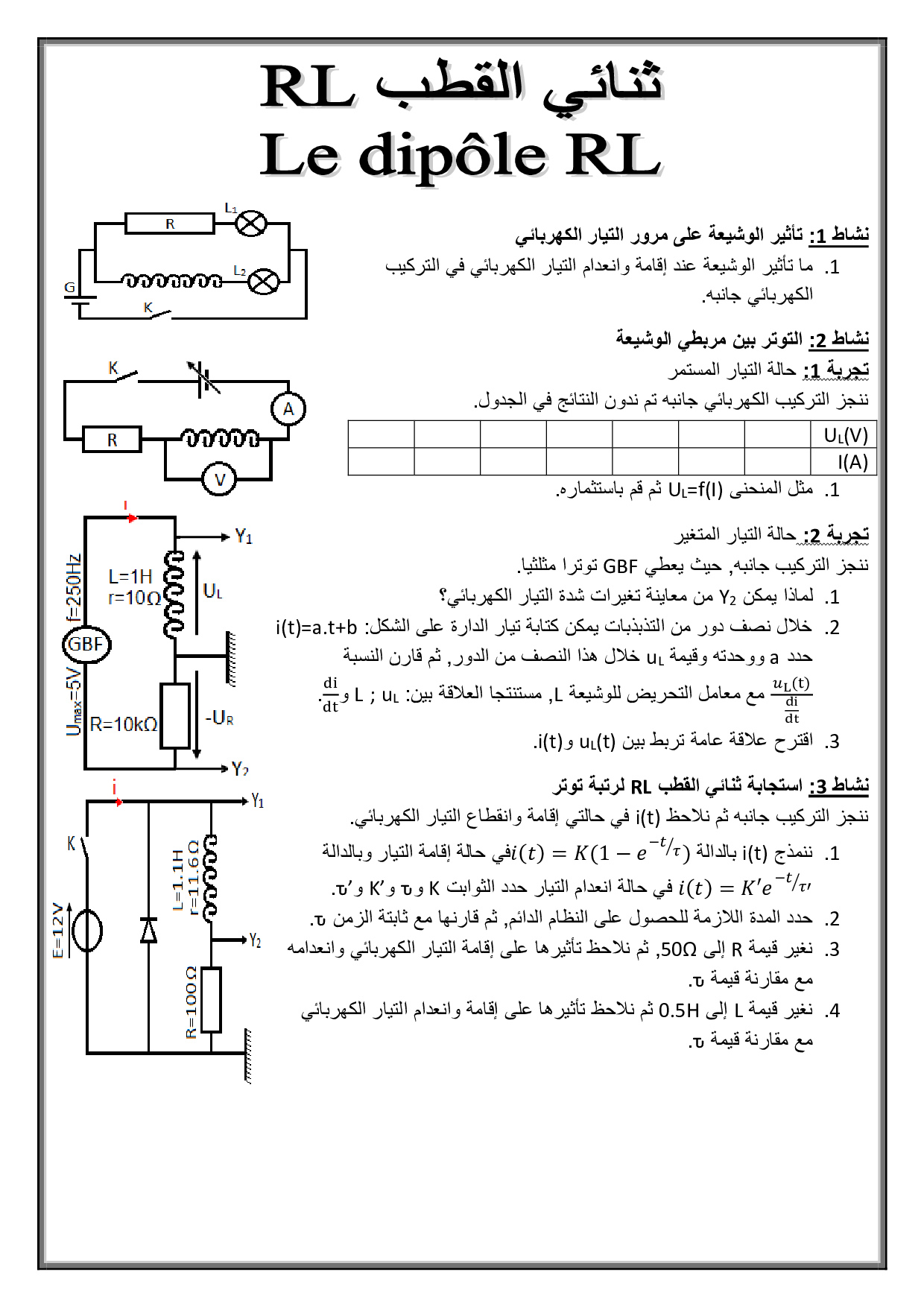 ثنائي القطب RL - أنشطة 5