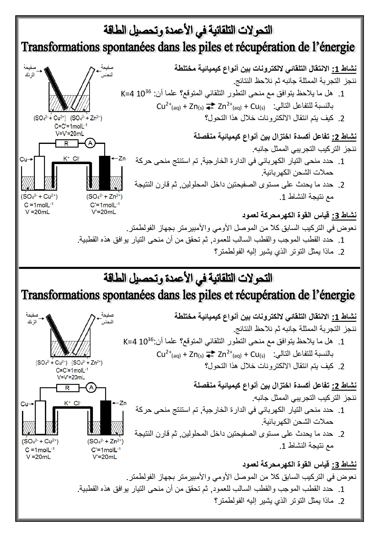 التحولات التلقائية في الأعمدة وتحصيل الطاقة - أنشطة 3