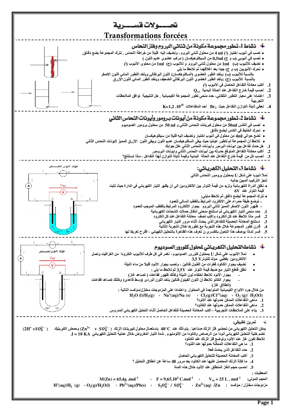 التحولات القسرية والتحليل الكهربائي - أنشطة 2