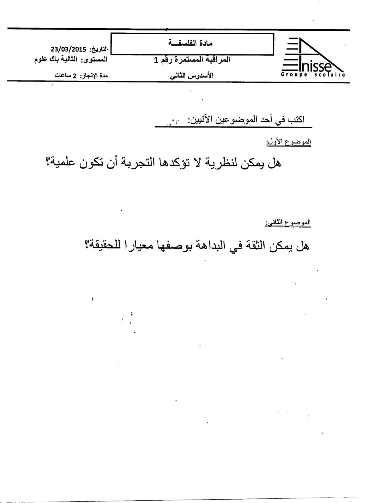 الفرض 1 نموذج 5 - الفلسفة ثانية باك علوم وتقنيات الدورة الثانية