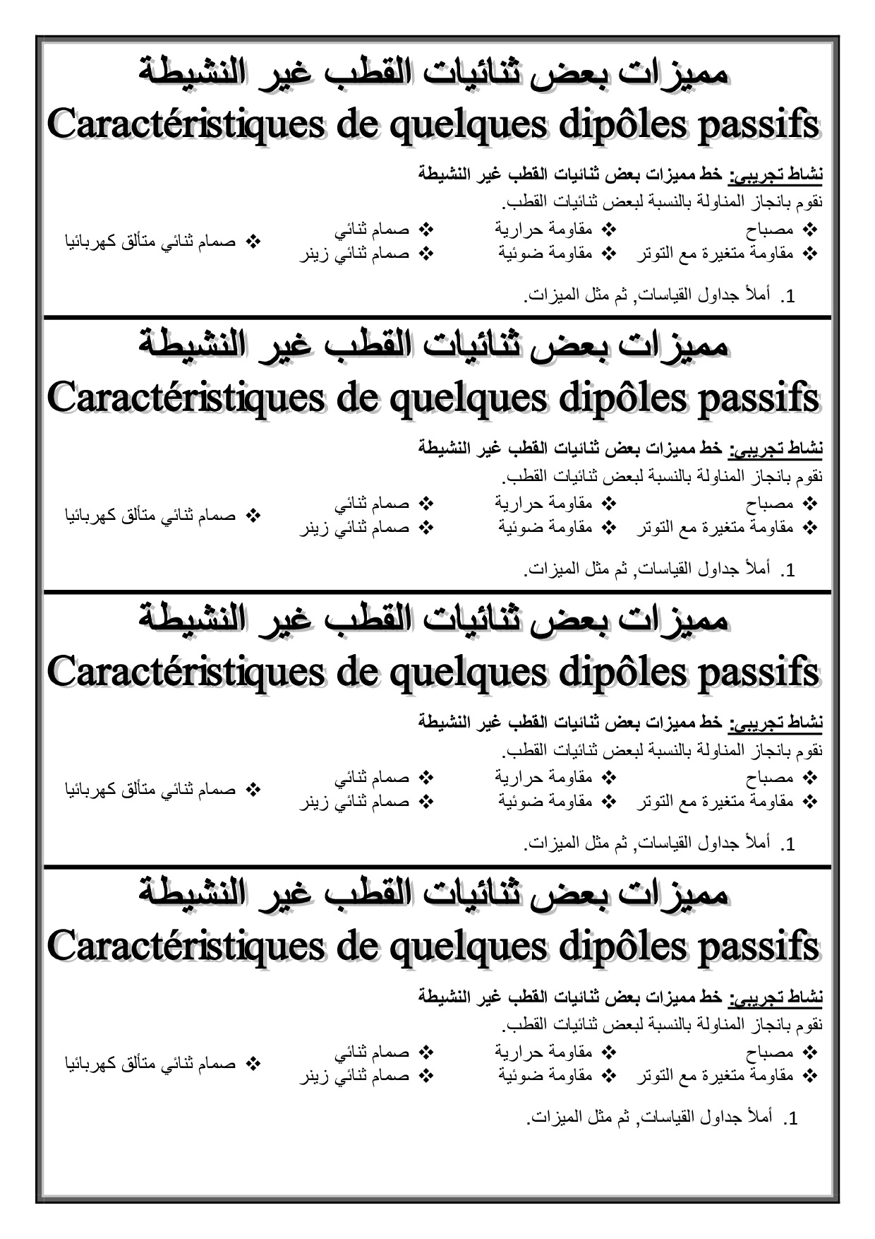 مميزات بعض ثنائيات القطب غير النشيطة - أنشطة 1