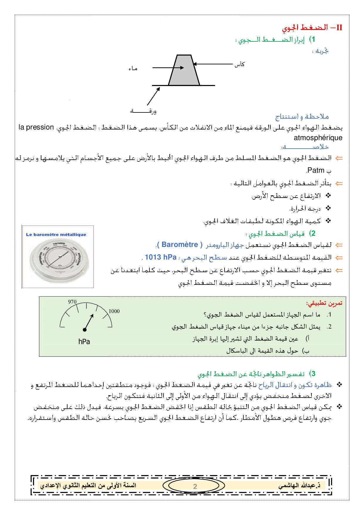 الضغط والضغط الجوي - ملخص الدرس 2