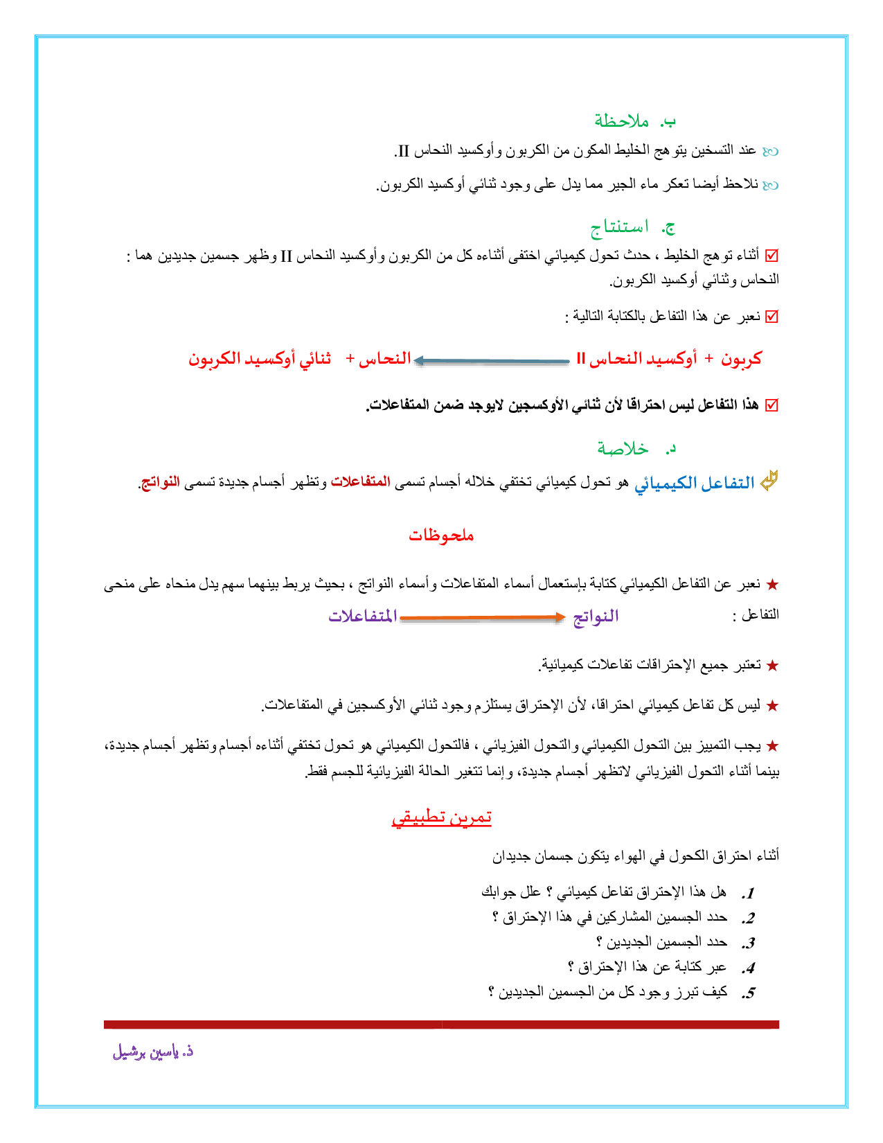 مفهوم التفاعل الكيميائي - الدرس 1