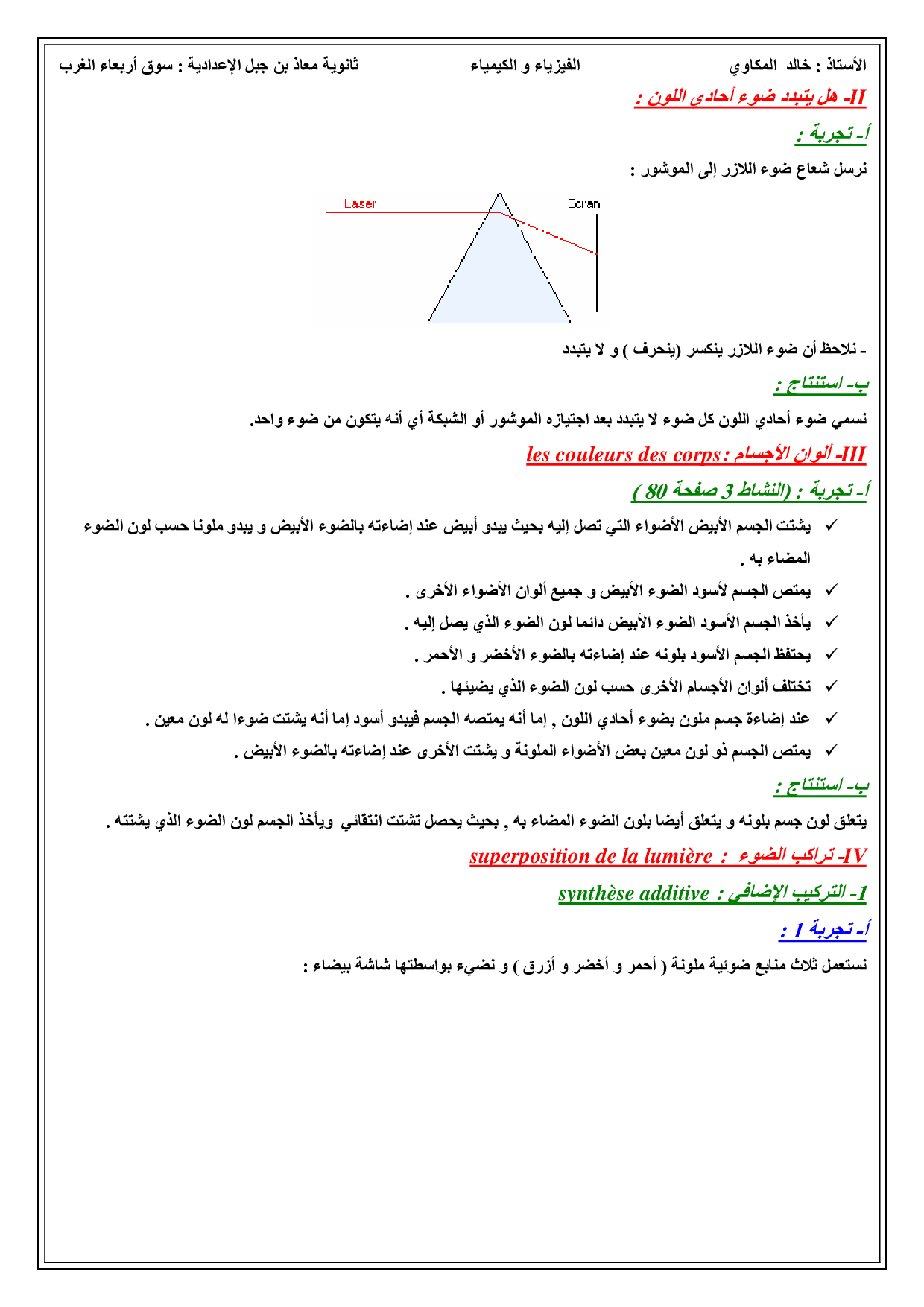 الضوء والألوان - تبدد الضوء - الدرس 3