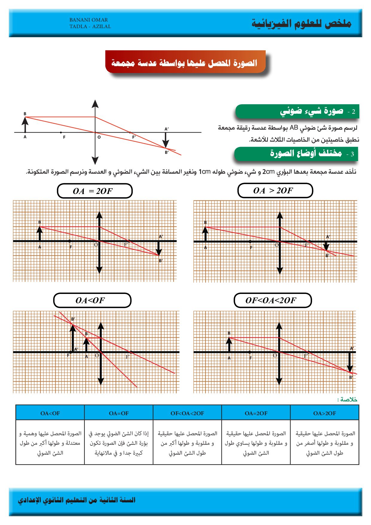 الصورة المحصل عليها بواسطة عدسة رقيقة مجمعة - ملخص الدرس 1