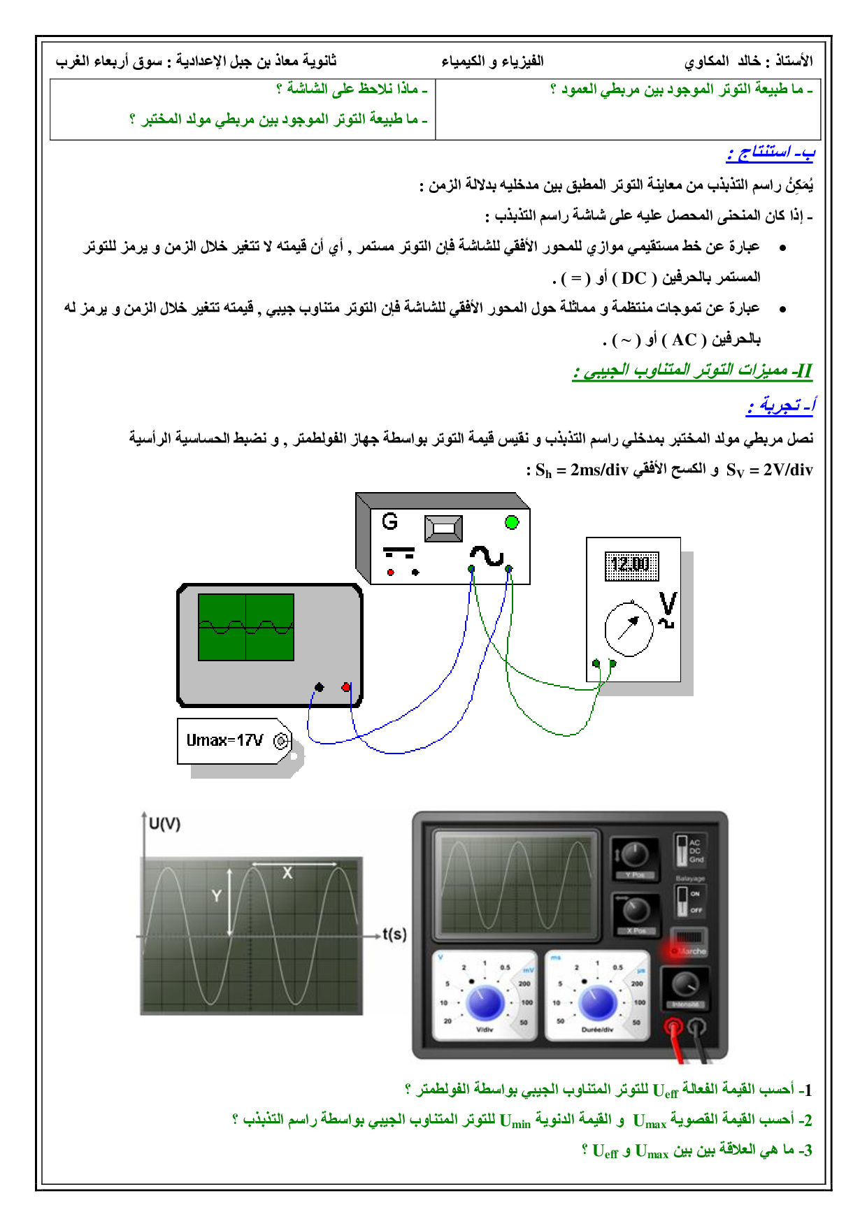 التيار الكهربائي المتناوب الجيبي - الدرس 3