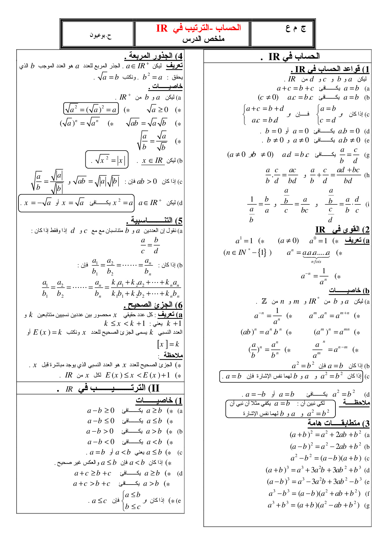 الترتيب في المجموعة IR - ملخص الدرس 1