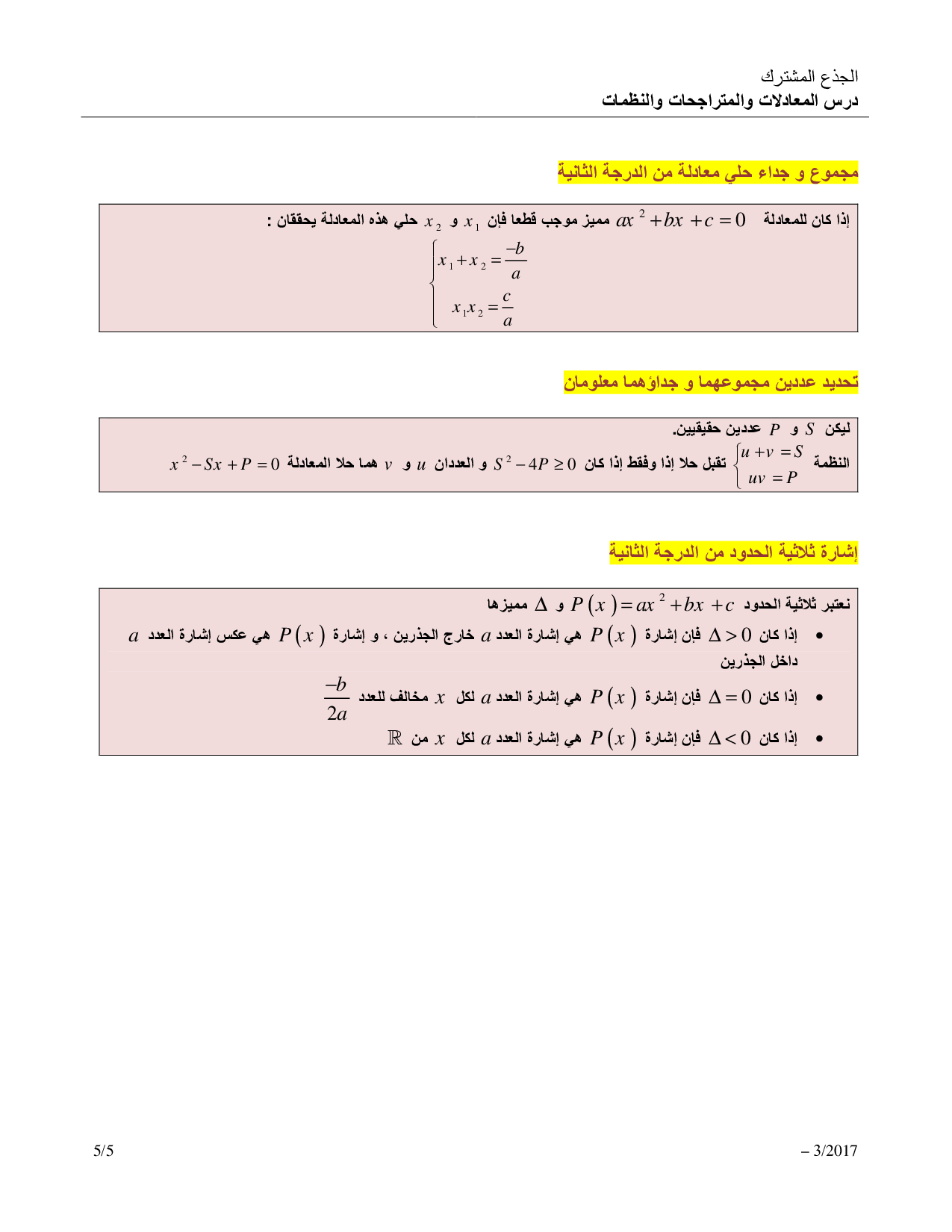 المعادلات والمتراجحات والنظمات - ملخص الدرس 1