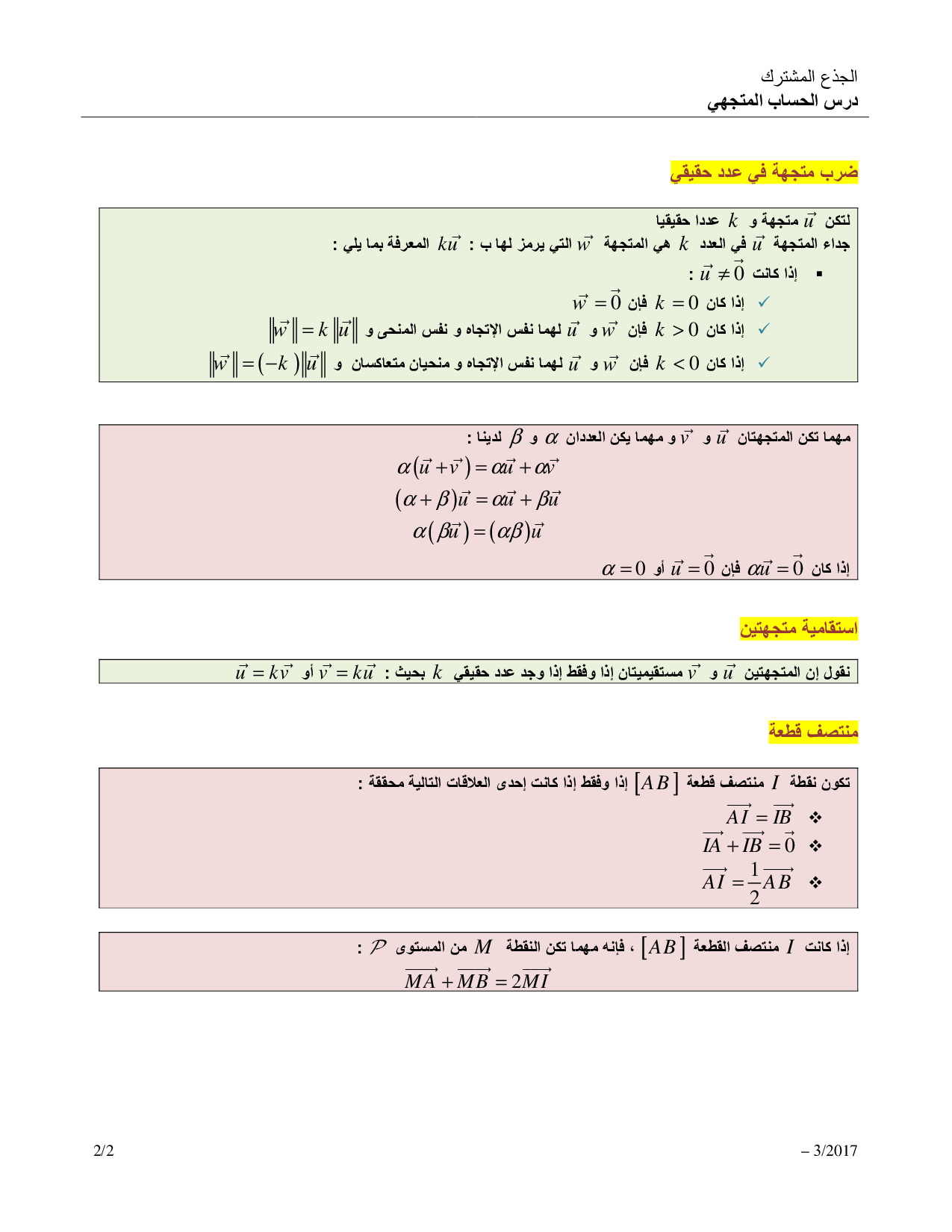 الحساب المتجهي في المستوى - ملخص الدرس 1