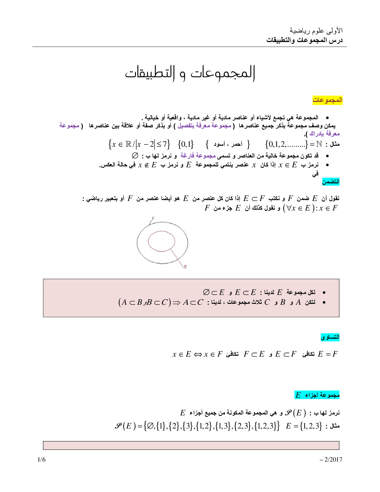 المجموعات والتطبيقات - ملخص الدرس 1