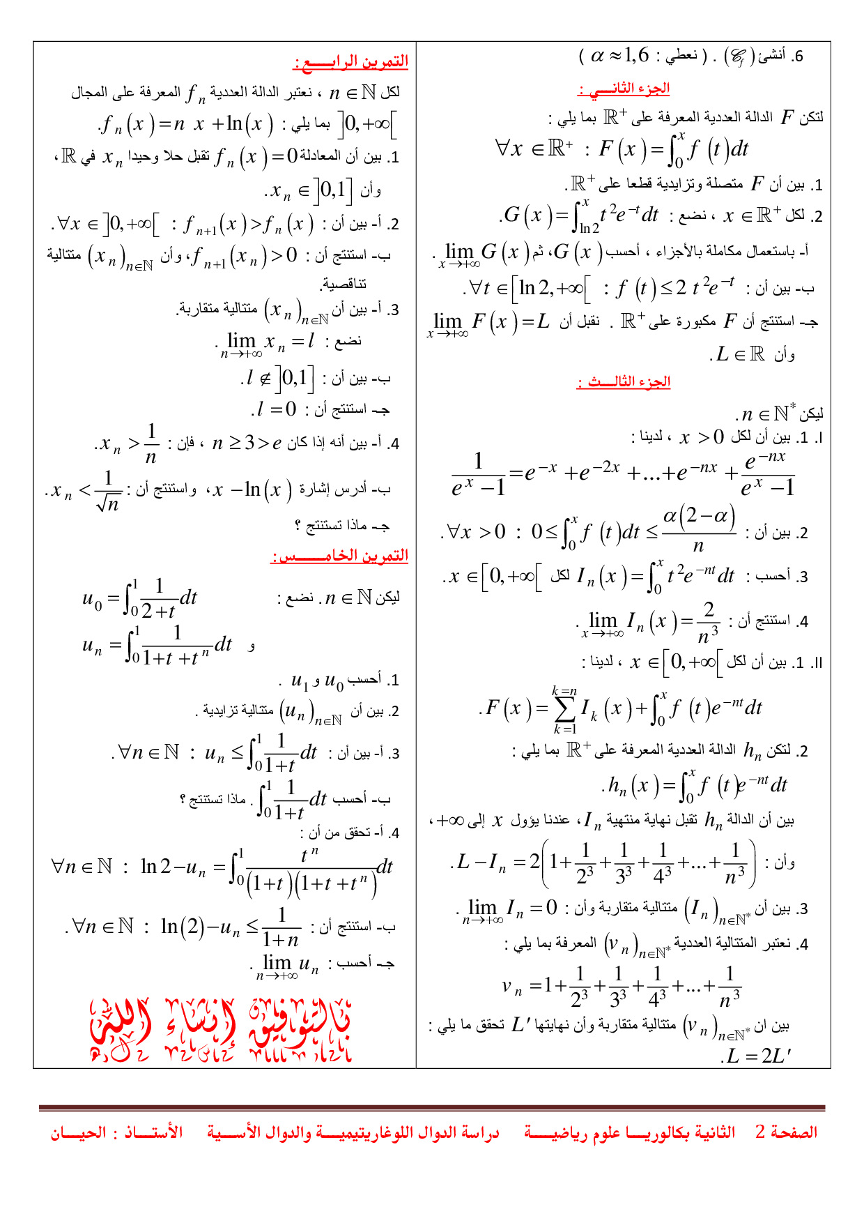 الرياضيات: الثانية باك علوم رياضية أ