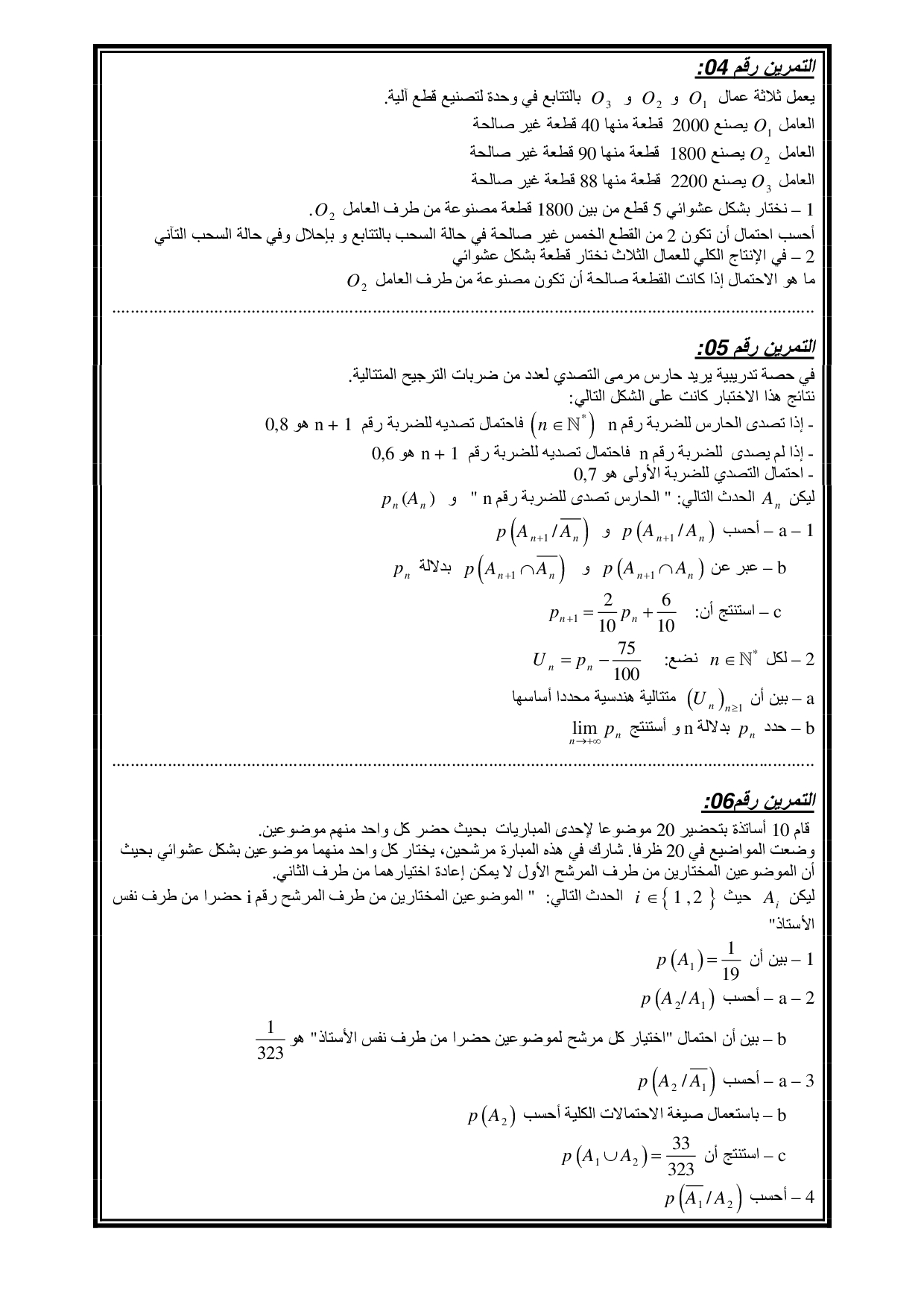 الاحتمالات - تمارين غير محلولة 3