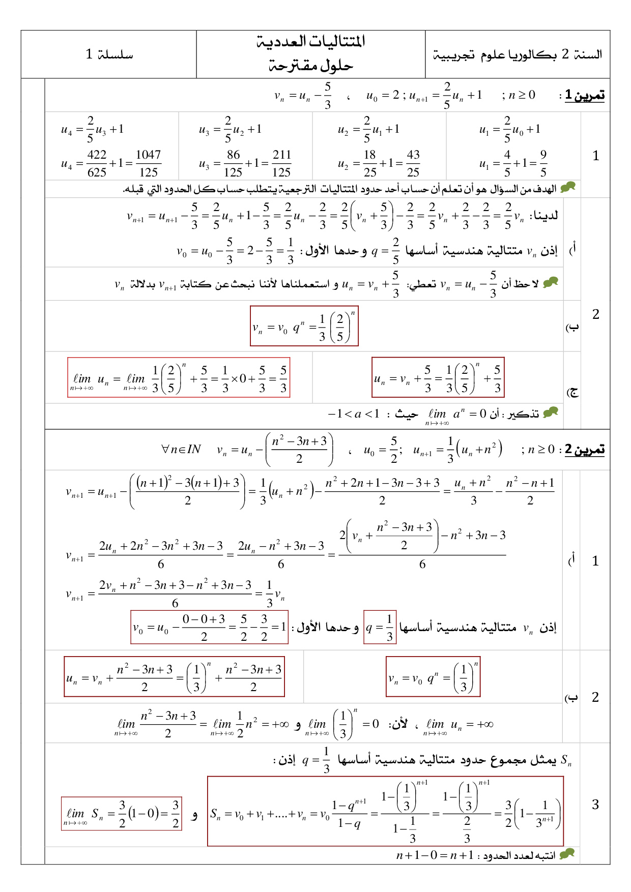 المتتاليات العددية - تصحيح سلسلة التمارين 2