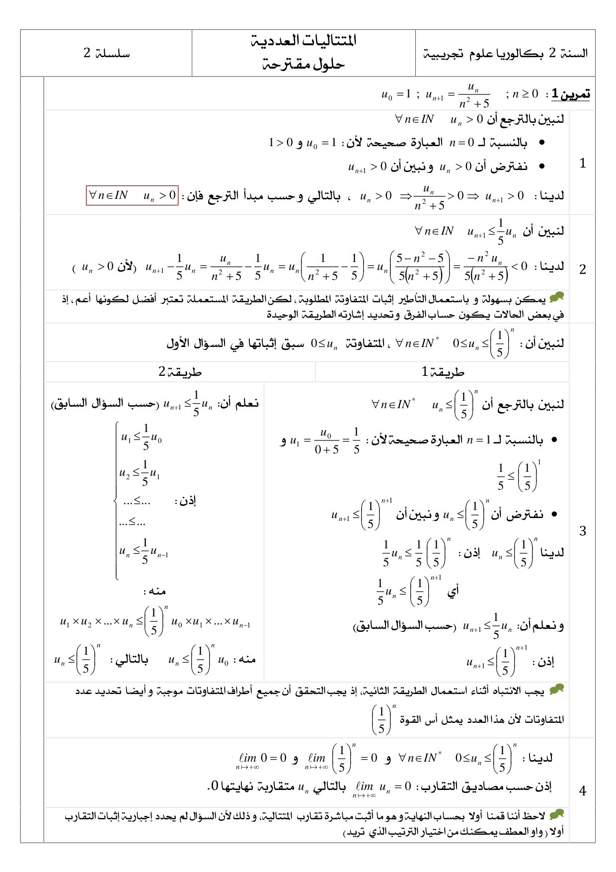 المتتاليات العددية - تصحيح سلسلة التمارين 3