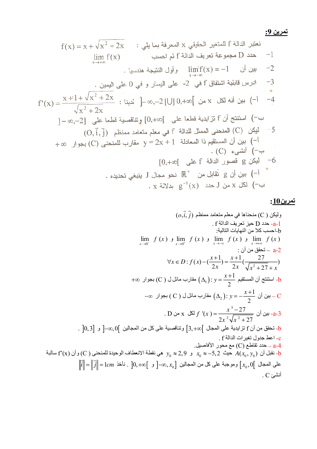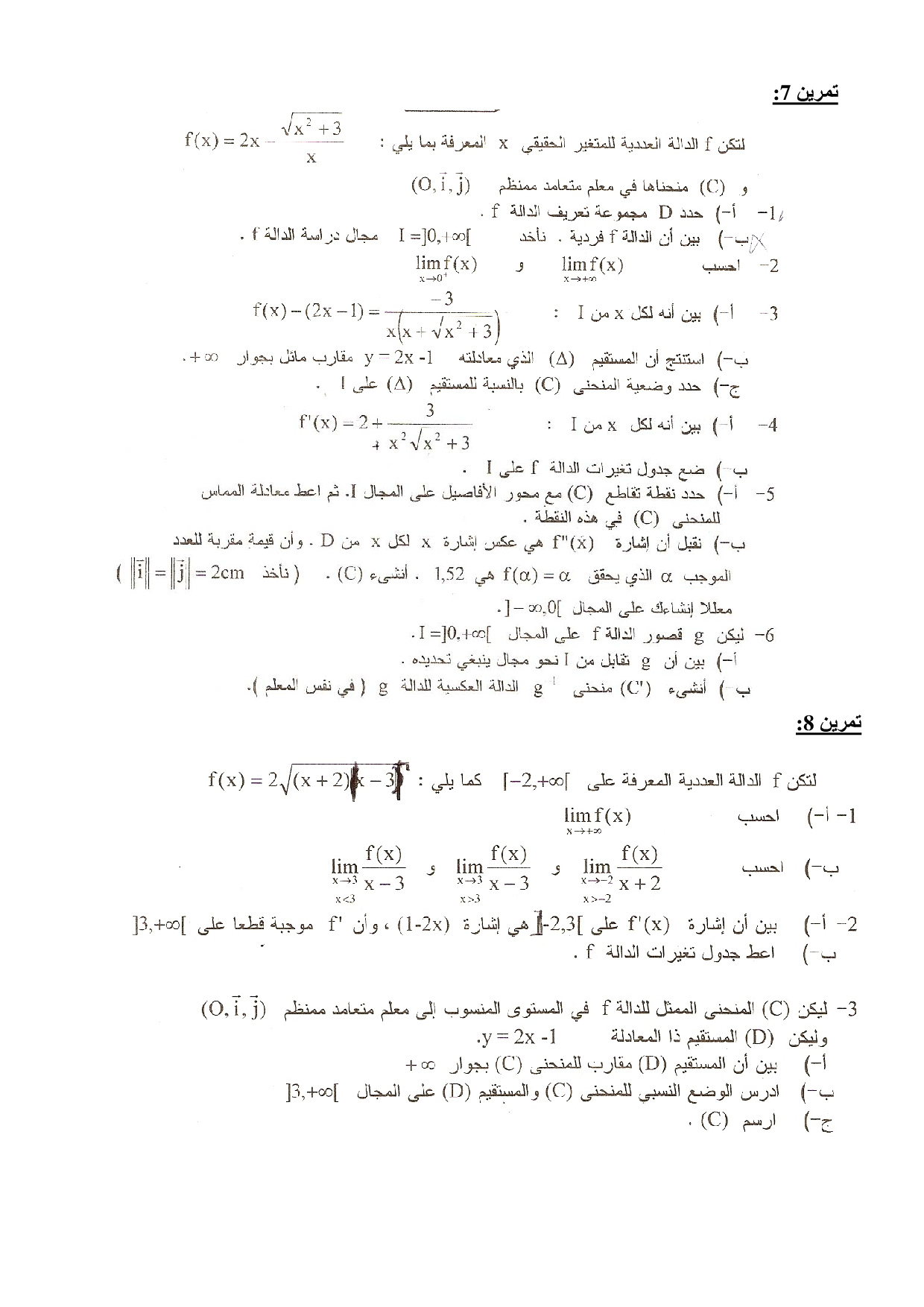 دراسة الدوال وتمثيلها المبياني - سلسلة التمارين 3