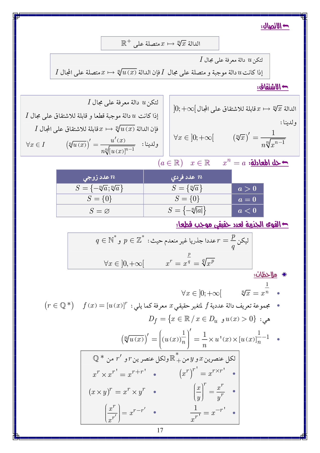 دالة الجدر من الرتبة n - ملخص الدرس 1