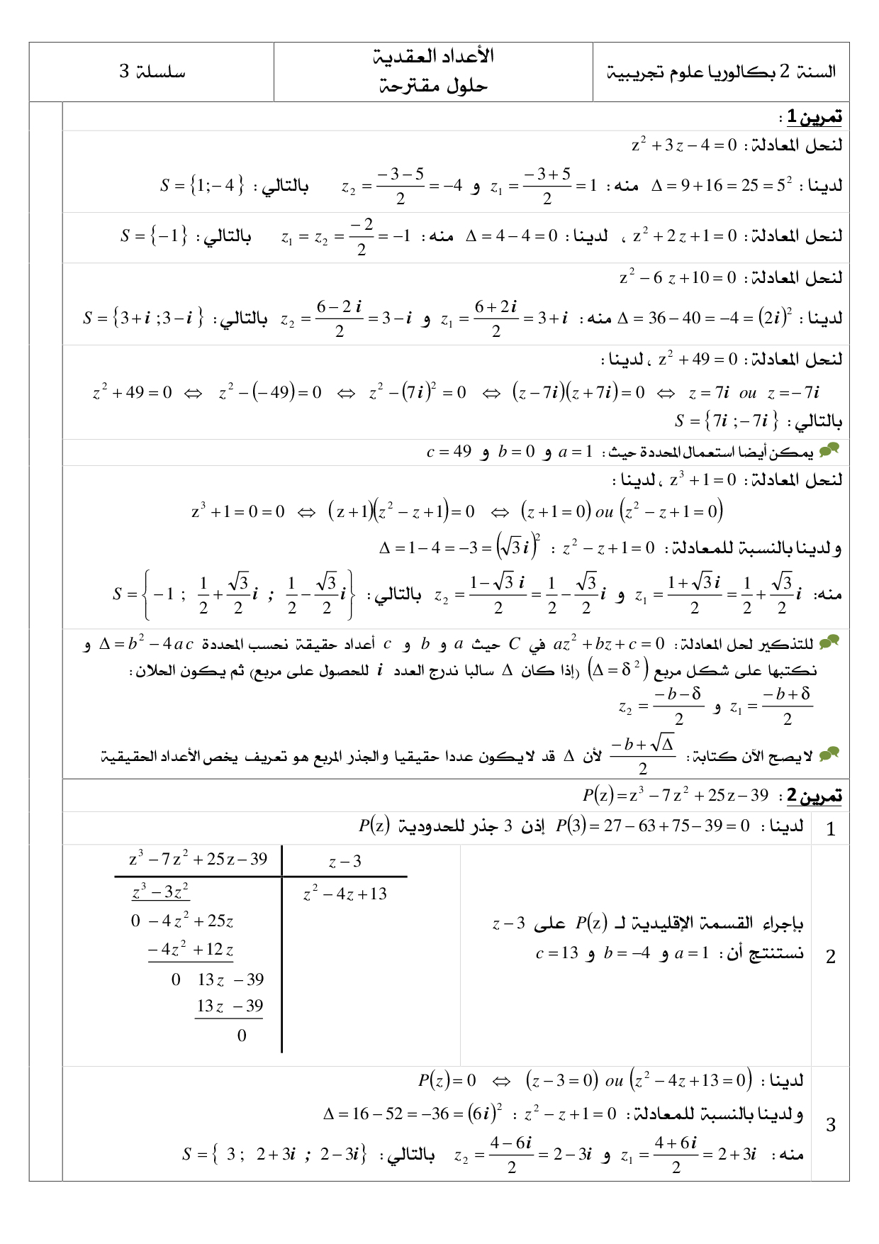 الأعداد العقدية 2 - تصحيح سلسلة التمارين 2