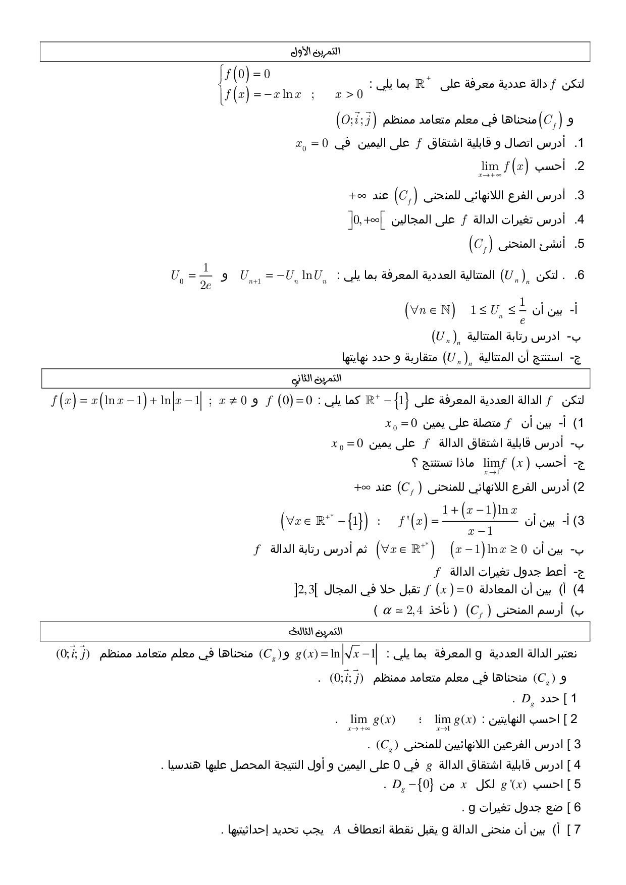 الدوال اللوغاريتمية - تمارين غير محلولة 5
