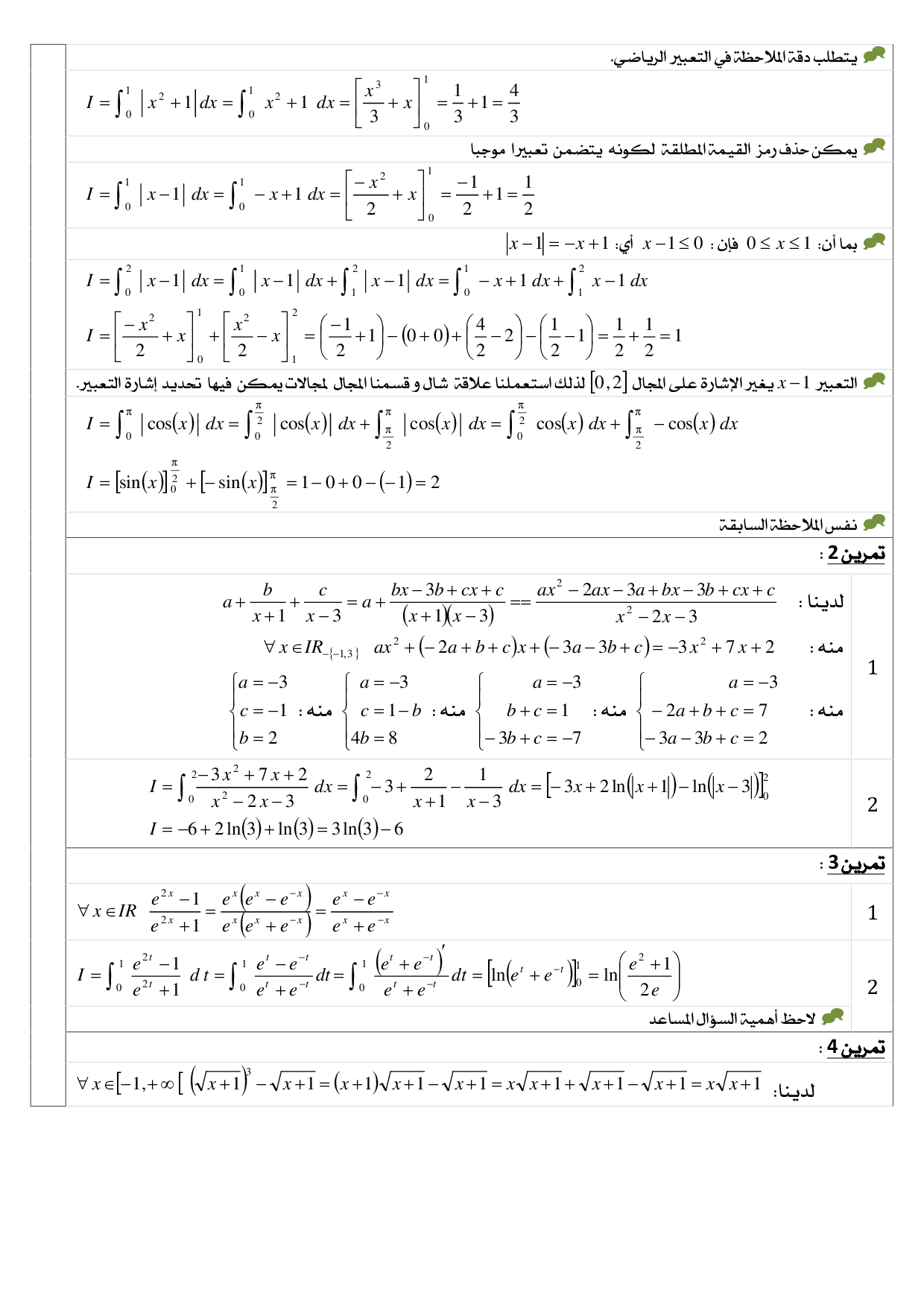 الحساب التكاملي - تصحيح سلسلة التمارين 2