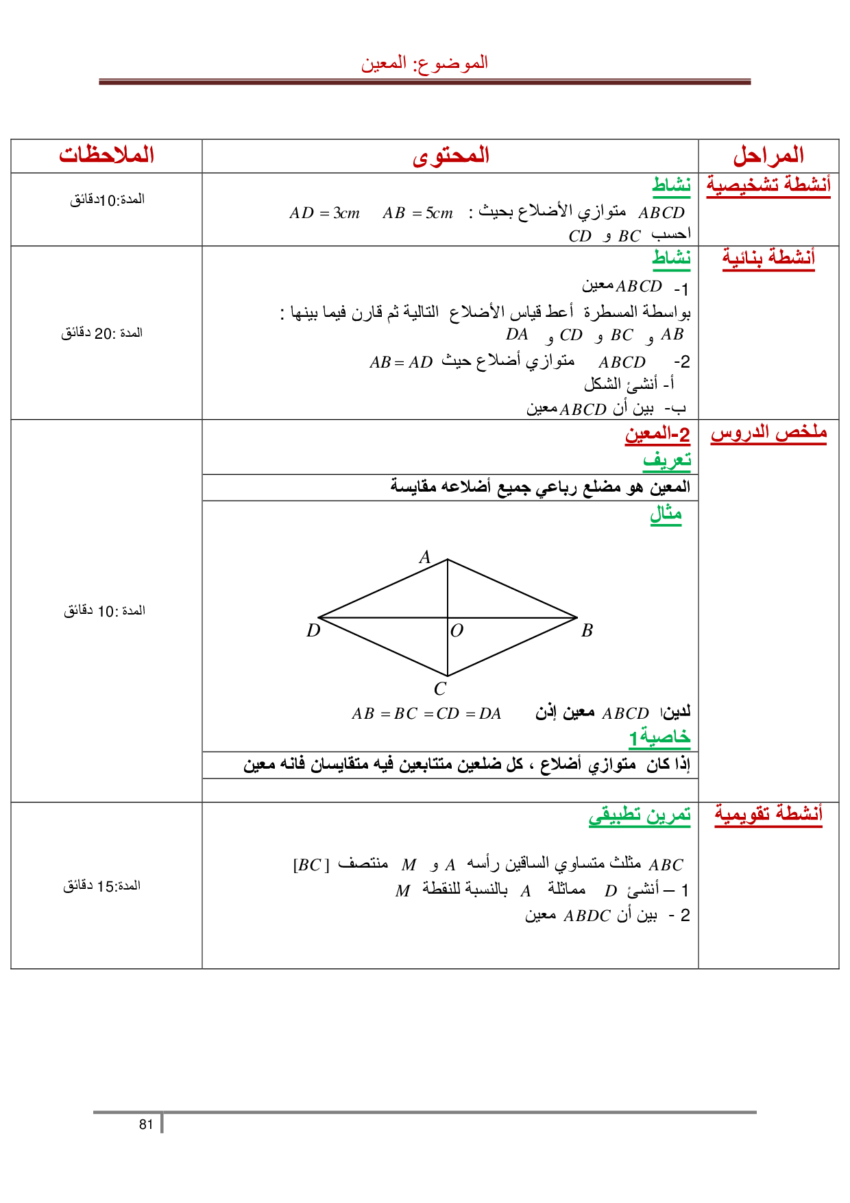 جذاذات الرياضيات للسنة الأولى إعدادي